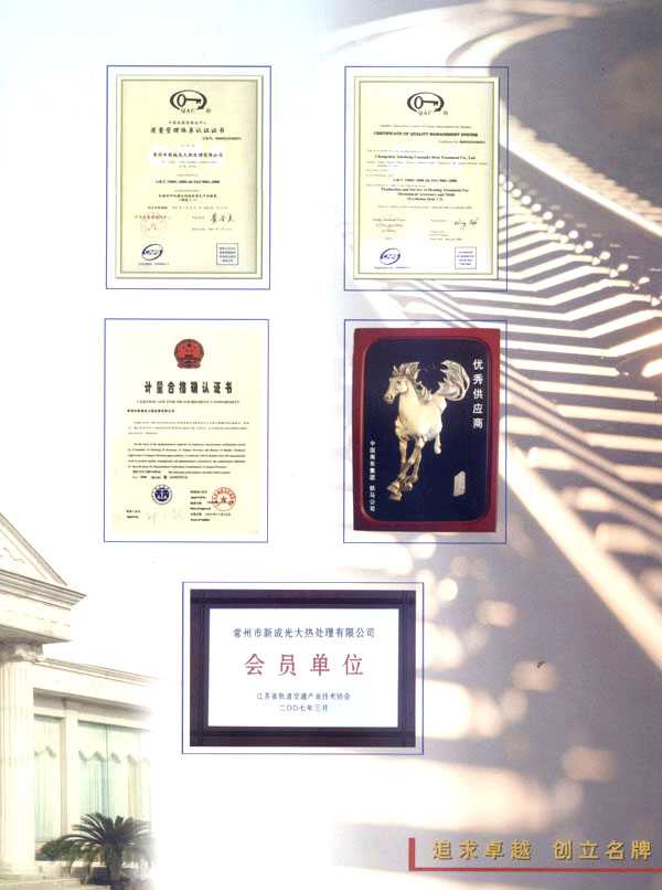 公司現(xiàn)有職工258名,具有高、中級職稱的管理人員20多名,經(jīng)過培訓(xùn)、考核合格的生產(chǎn)工人200多名。設(shè)生產(chǎn)安全部,技術(shù)質(zhì)量部,設(shè)備動力部,經(jīng)理辦公室和生產(chǎn)車間、生產(chǎn)班組等管理的生產(chǎn)部門。本公司是我市熱處理行業(yè)第一個通過國家質(zhì)量體系認(rèn)證的企業(yè),同時也是我市軌道交通產(chǎn)業(yè)聯(lián)合會、省科技廳市科技局定點扶持的骨干企業(yè),是鐵道部戚墅堰機車車輛工藝研究所、航空航天部蘇州長風(fēng)機械總廠定點協(xié)作單位,是國外阿爾斯通、GE公司、三菱重工等多家公司的合作伙伴。
