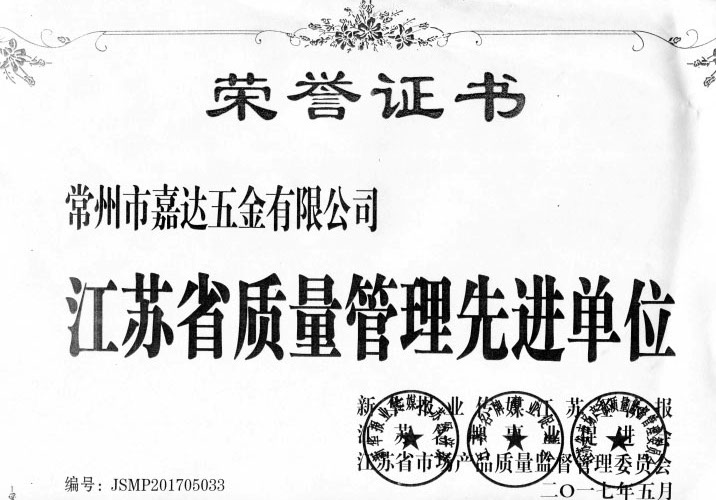 常州市嘉達(dá)五金有限公司是專業(yè)生產(chǎn)不銹鋼防火、防盜合頁、銅手拉門、銅門鉸鏈、銅花和各種不銹鋼暗插銷的企業(yè).最近又成功開發(fā)承重鉸鏈以及調(diào)節(jié)門縫可調(diào)式鉸鏈.同時(shí)引進(jìn)澳大利亞技術(shù)開發(fā)各種鋁合金透氣百頁窗,遠(yuǎn)銷歐美市場. 我司占地面積25000平方米,建筑面積12000平方米;固定資產(chǎn)1200萬元,公司設(shè)備齊全,設(shè)計(jì)獨(dú)特,檢測一流,產(chǎn)品適用于高級防火門以及現(xiàn)代高層居室、艦船門的配套,也適應(yīng)于一般居民.產(chǎn)品經(jīng)"天津國家固定滅火系列和耐火構(gòu)件質(zhì)量監(jiān)督檢驗(yàn)中心"檢驗(yàn)合格. 公司重視產(chǎn)品質(zhì)量,重視產(chǎn)品開發(fā)創(chuàng)新.目前已建立完整的質(zhì)量管理體系:通過ISO9001:2000質(zhì)量認(rèn)證體系和中國強(qiáng)制認(rèn)證3C認(rèn)證.產(chǎn)品曾獲國家知識產(chǎn)權(quán)局"中國專利技術(shù)博覽會"金獎(jiǎng)、獲得"企業(yè)資信等級AAA級"、"信用(合同)AAA級企業(yè)"、"中國檢驗(yàn)協(xié)會會員"、"中國電器照明協(xié)會委員"、"中國工商協(xié)會委員"、"首批國家質(zhì)量服務(wù)信得過單位"、"常州市文明單位"及"武進(jìn)區(qū)文明單位"的稱號. 公司的經(jīng)營宗旨是"以顧客為中心、以質(zhì)量為市場、以創(chuàng)新求發(fā)展、以管理求效益". 公司將一如既往,以一流的產(chǎn)品質(zhì)量,誠心周到的服務(wù)使顧客滿意,以更好的服務(wù)于客戶.