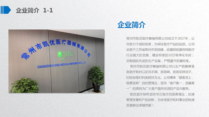 常州市凱優(yōu)醫(yī)療器械有限公司成立于2017年,是一家專注于研究、開(kāi)發(fā)、生產(chǎn)及銷售喂食類醫(yī)療耗材、醫(yī)用泌尿類耗材、婦科類檢查器械、口罩等產(chǎn)品于一體的現(xiàn)代化企業(yè)。公司坐落于常州市天寧區(qū)鄭陸鎮(zhèn)一天寧高新區(qū)。我們的產(chǎn)品先后通過(guò)FDA、CE、ISO等認(rèn)證。 公司成立至今,始終秉承“顧客至上,銳意進(jìn)取”的經(jīng)營(yíng)理念,先后獲得守合同重信用企業(yè)、國(guó)家質(zhì)量服務(wù)信譽(yù)AAA級(jí)企業(yè)等榮譽(yù)。我們擁有經(jīng)驗(yàn)豐富的銷售團(tuán)隊(duì)、各類專業(yè)的技術(shù)人才、熟練操作的員工以及數(shù)臺(tái)國(guó)內(nèi)外先進(jìn)的設(shè)備,敦力于為客戶提供最優(yōu)質(zhì)的服務(wù)和支持。我們以先進(jìn)的技術(shù)和科學(xué)的管理為依托,堅(jiān)持實(shí)施品牌戰(zhàn)略,在競(jìng)爭(zhēng)激烈的醫(yī)療器械行業(yè)內(nèi),我們注重追求自主設(shè)計(jì)研發(fā),己累計(jì)推出自主研發(fā)專利十五余項(xiàng)。公司成立短短幾年的時(shí)間已經(jīng)實(shí)現(xiàn)了跨越式發(fā)展,產(chǎn)品遠(yuǎn)銷東南亞、東歐、北美等地區(qū),贏得,國(guó)內(nèi)外客戶的一致贊譽(yù)。 長(zhǎng)風(fēng)破浪會(huì)有時(shí),直掛云帆濟(jì)滄海。凱優(yōu)醫(yī)療如同翱翔的雄鷹,迎著希望,展翅飛翔。面對(duì)新的機(jī)遇與挑戰(zhàn),凱優(yōu)人定會(huì)憑借工匠精神,持續(xù)改進(jìn)、不斷創(chuàng)新,為企業(yè)在激烈的市場(chǎng)競(jìng)爭(zhēng)中以質(zhì)取勝,確保行業(yè)領(lǐng)先地位,最終實(shí)現(xiàn),成為醫(yī)療耗材行業(yè)引領(lǐng)者的企業(yè)愿景。 凱優(yōu)醫(yī)療,因?yàn)閷W⑺宰吭健?/FONT>