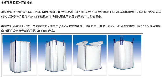 常州優(yōu)尼克包裝有限公司主要致力于柔性集裝袋、集裝箱內(nèi)襯袋、有紡土工布及塑編包裝袋的生產(chǎn)與銷售。我們可以生產(chǎn)U型,四片型,圓筒、拉筋等多種設計款型的的集裝袋及特殊規(guī)格要求的集裝袋; 包括Type A, TypeB, TypeC, 耐高溫及耐低溫的袋子, 食品級的袋子. 我們的產(chǎn)品廣泛用于化工行業(yè)、食品行業(yè)、染料顏料行業(yè)、炭黑行業(yè)、采礦行業(yè)及建筑行業(yè)等許多行業(yè)領域中。