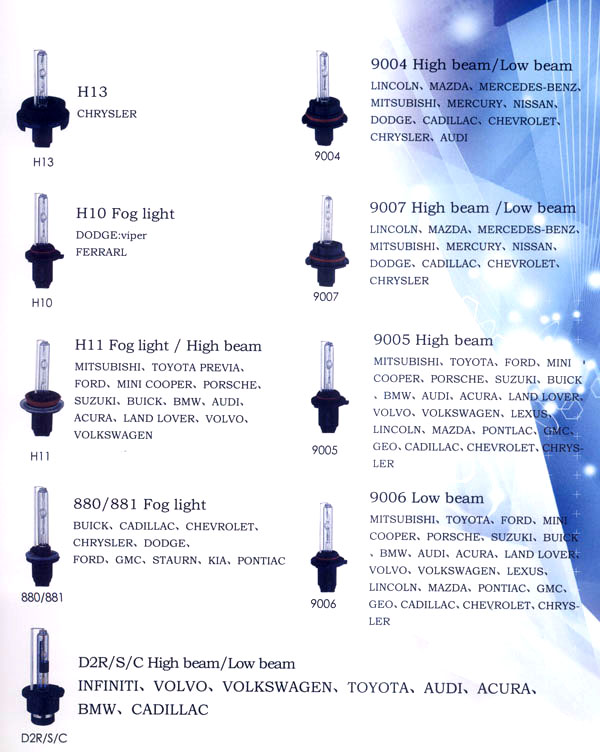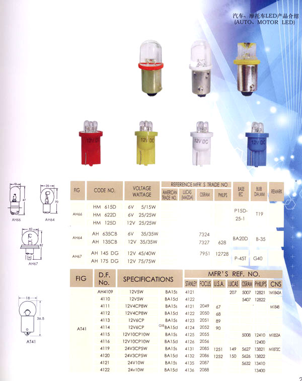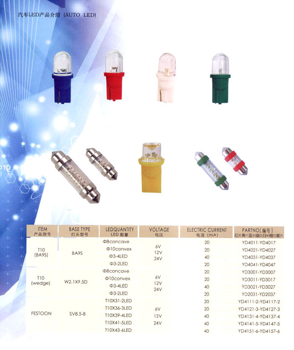 公司通過(guò)十余年的不懈努力與奮斗,現(xiàn)已擁有雄厚的技術(shù)力量、先進(jìn)的加工設(shè)備、嚴(yán)格的質(zhì)量保證體系(通過(guò)IS0900:2000認(rèn)證)和完善的科學(xué)管理。公司主要生產(chǎn)汽車燈,摩托車燈等。主營(yíng)明亞達(dá)、華真、HIDXENON、Spwite牌電光源產(chǎn)品,產(chǎn)品80%出口,品種多、質(zhì)量好、信譽(yù)好,深受客戶歡迎。尤其是汽車燈、摩托車燈泡系列產(chǎn)品,適用于多類機(jī)動(dòng)車的需求。