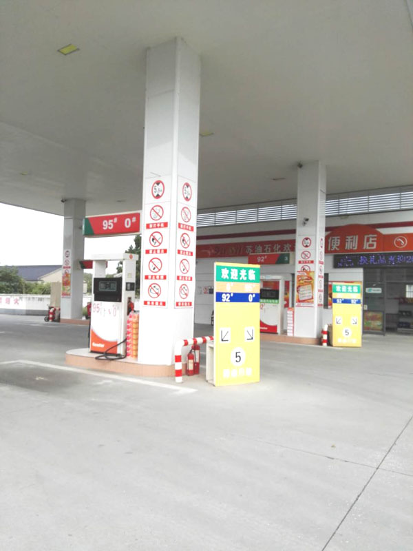 我公司占地面積1600平方米,建筑面積347平方米,加油棚28,8平方米,綠化帶面積不算在內(nèi),現(xiàn)有加油機(jī)三臺(tái),92號(hào)無(wú)鉛汽油二把槍,95號(hào)無(wú)鉛汽油一把槍,零號(hào)柴油二把槍。