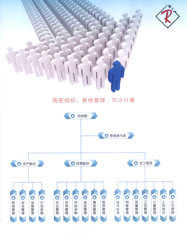 聚仁重效率更重質(zhì)量;在聚仁,寧缺毋濫的精品意識是每個員工的責任,制造精良產(chǎn)品是每個員工永遠的追求。聚仁立求做到要效率,更要質(zhì)量,除了品質(zhì)一流的產(chǎn)品外,其它產(chǎn)品絕不交付客戶。聚仁重現(xiàn)場更重市場:市場決定現(xiàn)場,現(xiàn)場連著市場,現(xiàn)場為市場服務(wù),在搞好現(xiàn)場管理的同時,實現(xiàn)與市場和客戶的雙贏。聚仁對客戶的承諾是:不合格的材料不進廠,不合格的半成品不轉(zhuǎn)序,不合格的產(chǎn)品不交付,以百分之百的合格品交付客戶。