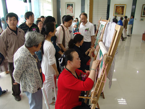 狄靜亂針繡工作室由江蘇省工藝美術(shù)大師,江蘇省非物質(zhì)文化遺產(chǎn)傳承人,研究員級(jí)高級(jí)工藝美術(shù)師狄靜創(chuàng)立于1999年,現(xiàn)已初具規(guī)模,每年能手工繡制作品上百幅,是國(guó)家、省、市政府對(duì)外交流禮品的指定繡制單位,當(dāng)之無愧地成為宣傳常州特色手工藝品的主陣地,常州最具影響力的對(duì)外藝術(shù)交流名片。 2004年,狄靜亂針繡工作室受常州市文廣新局、常州劉海粟美術(shù)館的邀請(qǐng),在劉海粟美術(shù)館內(nèi)開設(shè)常州亂針繡館。作為狄靜亂針繡工作室常年的對(duì)外展示窗口,現(xiàn)在常州亂針繡館每天接待參觀人數(shù)達(dá)百余人次。2008年6月,常州狄靜亂針繡工作室受市文廣新局和新北區(qū)政府的邀請(qǐng),加盟坐落薛家鎮(zhèn)“華夏工藝美術(shù)產(chǎn)業(yè)博覽園”,至今年接待參觀人達(dá)數(shù)萬人。 狄靜亂針繡工作室的作品以繡工精到、形象逼真、色彩豐富、立體感強(qiáng)等特點(diǎn)被眾多收藏家收藏,遠(yuǎn)銷世界各國(guó)。該工作室的作品多次被中國(guó)政府作為國(guó)禮贈(zèng)送給斯里蘭卡總統(tǒng)、阿曼國(guó)王和王子、美國(guó)LU公司總裁副總裁全家、美國(guó)總統(tǒng)顧問團(tuán)顧問張緒通教授等。常州市政府也在本工作室訂制亂針繡肖像贈(zèng)送給香港政務(wù)司司長(zhǎng)唐英年、日本議員、和為常州建設(shè)發(fā)展作出貢獻(xiàn)的各國(guó)友人。工作室的人像繡藝術(shù)作品尤為被世界各地藝術(shù)品收藏家關(guān)注,紛紛前來定繡,著名的香港實(shí)業(yè)家李兆基先生先后兩次到狄靜亂針繡工作室,定繡了自己的大幅肖像。臺(tái)灣名人焦定標(biāo)先生、香港著名實(shí)業(yè)家查濟(jì)民先生、美國(guó)通用公司總裁等都到狄靜亂針繡定繡自己和家人的肖像。 狄靜亂針繡工作室在弘揚(yáng)傳統(tǒng)文化,培育優(yōu)秀傳承人才的道路上始終堅(jiān)持不懈。2004年起,在常州文化館內(nèi)開設(shè)免費(fèi)亂針繡培訓(xùn)班,到目前已有1000多名學(xué)員學(xué)習(xí)了亂針繡藝術(shù)。2009年,應(yīng)重慶市大渡口區(qū)政府的邀請(qǐng),狄靜將亂針繡培訓(xùn)班開到重慶,為重慶市的學(xué)生和部分下崗女工傳授亂針繡技藝。狄靜亂針繡工作室內(nèi),還有不遠(yuǎn)萬里從德國(guó)、泰國(guó)、韓國(guó)、捷克斯洛伐克等國(guó)慕名來求學(xué)的外籍學(xué)生,她們現(xiàn)在都已有作品問世。其中泰國(guó)學(xué)生陳玉鸞女士,懷著對(duì)國(guó)王無限崇敬的心情,在狄靜老師悉心指導(dǎo)下繡出了一幅泰國(guó)普密蓬國(guó)王的繡像。2008年1月,狄靜受到泰國(guó)國(guó)王的邀請(qǐng),與陳玉鸞女士一起走進(jìn)泰國(guó)王宮親手將作品敬獻(xiàn)普密蓬國(guó)王,普密蓬國(guó)王對(duì)形神兼?zhèn),絲光閃爍的藝術(shù)珍品十分稱頌和贊賞。 多年來,狄靜亂針繡工作室直面挑戰(zhàn),不斷壯大發(fā)展亂針繡工作室的規(guī)!,F(xiàn)工作室擁有一支以狄靜為首的、技藝精湛的、刺繡精英為主體的繡娘團(tuán)隊(duì),是一個(gè)高水平、高素質(zhì)的亂針繡藝術(shù)群體,集亂針繡精品繡制、展示和技藝研究為一體,以打造精品的理念創(chuàng)作多題材、多層次的亂針繡藝術(shù)精品。