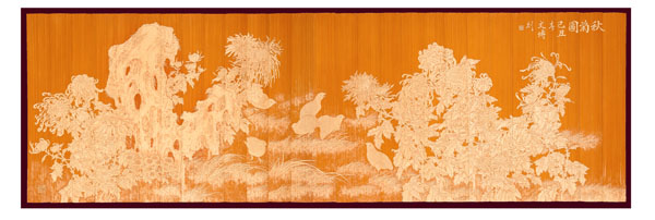 得獎情況 1、扇形擺件《花鳥》2004年9月太湖博覽會金獎 2、《蘭亭序》2008年11月江蘇藝博杯工藝美術(shù)精品獎銀獎 3、《雄風(fēng)圖》2008年11月江蘇藝博杯工藝美術(shù)精品獎創(chuàng)意獎 4、《靜音》2008年11月“天工藝苑•百花杯”中國工藝美術(shù)精品獎銀獎 5、《人物》2008年12月中國收藏藝術(shù)精品博覽會金獎 6、《花鳥》200 8年12月中國收藏藝術(shù)精品博覽會銀獎 7、《青竹鳥語》2008年12月中國收藏藝術(shù)品博覽會“入圍收藏品” 8、《吉祥富貴》2009年3月“金鳳凰”創(chuàng)新產(chǎn)品設(shè)計大獎賽金獎 9、《黃山云!2009年10月江蘇藝博杯工藝美術(shù)精品獎金獎 10、《花鳥》2009年10月第二屆江蘇旅游商品博覽會最佳產(chǎn)品獎 11、《秋菊圖》2009年11月“天工藝苑•百花杯”中國工藝美術(shù)精品獎銀獎 12、《秋鷹圖》2010年3月“金鳳凰”創(chuàng)新產(chǎn)品設(shè)計大獎賽優(yōu)秀獎 13、《花鳥四屏》2010年3月“金鳳凰”創(chuàng)新產(chǎn)品設(shè)計大獎賽銅獎 14、《荷塘清暑》2010年5月深圳國際文化產(chǎn)業(yè)博覽交易會銅獎 15、《溪山煙云圖》2010年9月江蘇藝博杯工藝美術(shù)精品大獎賽金獎 16、《高士臨風(fēng)圖》2010年10月“天工藝苑•百花杯”中國工藝美術(shù)精品獎銀獎 17、《溪山煙云圖》2010年11月第二屆東方工藝美術(shù)之都博覽會“迎春花獎” 18、《深山尋隱圖》2011年3月“金鳳凰”產(chǎn)品設(shè)計大獎賽銅獎 19、《欣欣向榮》2011年5月深圳國際文化產(chǎn)業(yè)博覽交易會金獎 20、《江崖遠(yuǎn)眺圖》2011年9月江蘇藝博杯工藝美術(shù)精品大獎賽金獎 21、《富春山居圖》2011年10月“天工藝苑•百花杯”中國工藝美術(shù)精品獎金獎 22、《深山訪友》2011年11月中國無錫國際文化藝術(shù)博覽會銀獎 23、《幽谷清音》2012年3月“金鳳凰”創(chuàng)新產(chǎn)品設(shè)計大獎賽銅獎 24、《群芳競艷》2012年10月“儒仕儒家、百花杯”中國工藝美術(shù)精品博覽會金獎 25、《山村渡口圖》2012年12江蘇藝博杯工藝美術(shù)精品大獎賽金獎。 26、《晨妝》2013年4月“金鳳凰”創(chuàng)新產(chǎn)品設(shè)計大獎賽金獎。 27、《和風(fēng)圖》2013年6月中國(青島)工藝美術(shù)博覽會創(chuàng)新產(chǎn)品設(shè)計大賽金獎。 28、《松壑聽泉》2013年9月江蘇藝博杯工藝美術(shù)精品大獎賽銀獎。 29、《君子圖》2013年11月“國信•百花杯”中國工藝美術(shù)精品獎銀獎 30《碧水輕舟》2014年5月深圳國際文化產(chǎn)業(yè)博覽交易會銀獎。 31、《千巖萬壑圖》2014年10月“中國原創(chuàng)•百花杯”中國工藝美術(shù)精品獎金獎 32、《溪山訪友圖》2014年10月江蘇藝博杯工藝美術(shù)精品大獎賽銀獎 33、《深山云壑》2014年12月深圳冬季國際文化產(chǎn)業(yè)博覽交易會金獎 34、《鷹》2015年深圳文化產(chǎn)業(yè)博覽交易會獲“中國工藝美術(shù)文化創(chuàng)意獎”金獎