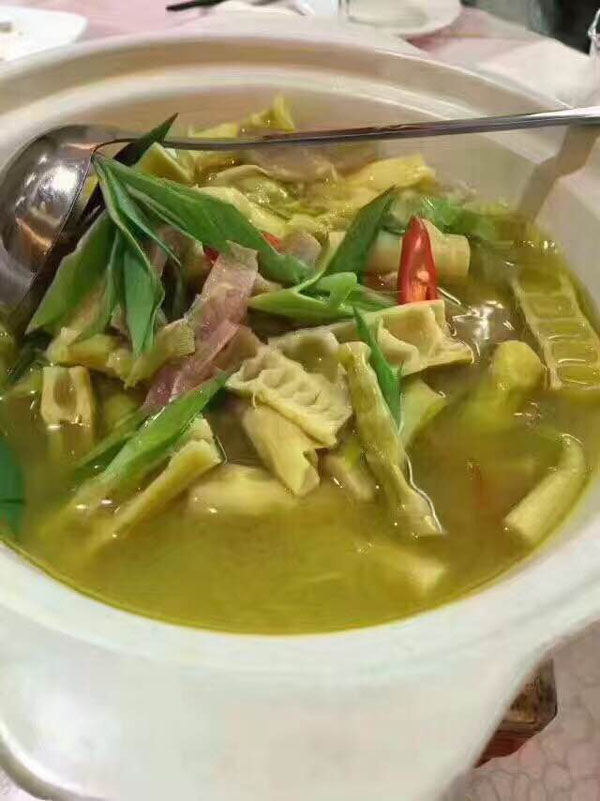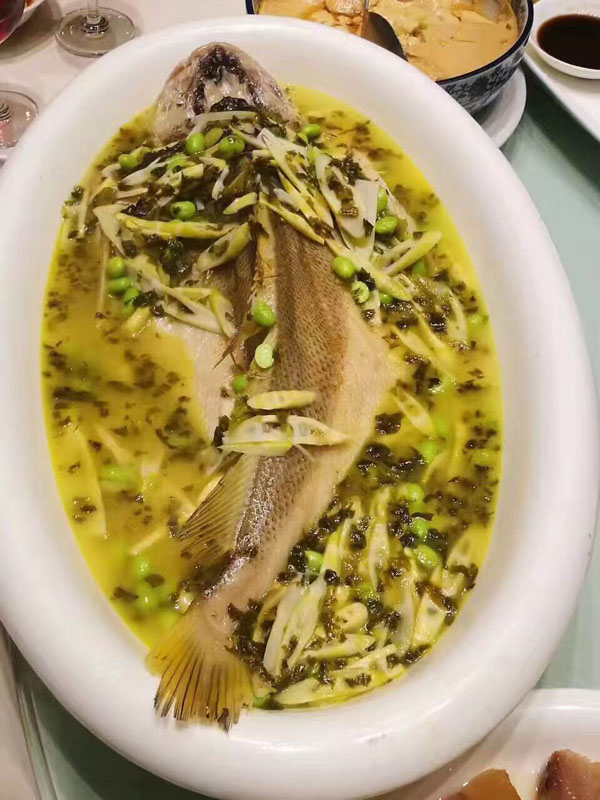 橫林有個地兒叫楊歧村,有句老話叫“上不靠橫林,下不靠洛社”,說的就是那里。 楊歧村過去幾十米就是無錫地界,今天小編推薦的土菜館「三妹農(nóng)家小吃」就在那里。 當小編一路七拐八拐,中午11點半到達那里時,門面雖然很簡陋,但店門口已然停了好多輛車。剛進入店門,就發(fā)現(xiàn)這家店人氣好旺,十幾桌基本都坐滿了。(所以說,人不可貌相,餐館也是如此) "三妹,三妹!"店里客人叫喚聲不絕于耳,原來老板娘叫楊三妹啊。你們忙,我們先隨便看看。 過大廳到后堂就是冷菜間,里面有白切草雞、鹵豬干、拌馬蘭等十幾種土菜,尤其那草雞濃郁的香味,讓小編肚子叫得咕咕響。 往前是活貨區(qū),各種鮮魚活蝦一格一格區(qū)分養(yǎng)著,再里面是開放式廚房,每個客人都可以看到,選用的放心食材和調(diào)料。  吃貨老板娘,楊三妹,三妹,從小到大一直有個嗜好,就是愛美味,不光喜歡吃,還喜歡鉆研做。2010年,「三妹小吃」開張,因為獨具特色,在楊歧這個小村一炮而紅。要說楊三妹最拿手的菜是什么,當然是酒糟扣肉。 糟本來就是一種做米酒留下來后,用來吊燒酒的。但是我們常州人很聰明,把糟和肉放在一起,做成一道美味菜,叫酒糟扣肉。 楊三妹的酒糟扣肉之所以有名,得益于母親的悉心傳授。記憶里小辰光,她母親做的扣肉總比別人家的香。「糟」,釀完酒后留下的糟,會與炒熟的新糯米,拌和在一起,陳一年!溉狻梗x擇本地養(yǎng)殖的良種豬,沒有臊味。 長大后,她把記憶里的美味延續(xù)了下來。精益求精的她,對扣肉的制作過程要求很嚴格。別人家制作都是把肉直接切大塊,排碗,熬槽,蒸爛。三妹說,這樣烹制,肉汁的鮮美會流失很多,口感減分不少。她的做法是精選新鮮豬五花,整大塊清蒸,保留肉汁的鮮美,之后再切塊紅燒,排碗,熬糟,澆蓋,再蒸。 三妹酒糟扣肉,出鍋后,色澤紅潤,味道鮮美。既有酒的香味,又有肉的鮮美,而且經(jīng)過蒸煮后,油脂都出來了,爽口不油膩。