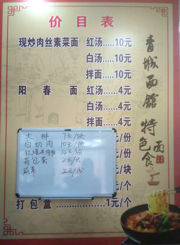 武進(jìn)區(qū)青城面館經(jīng)營面積280平方米左右,主要特色是現(xiàn)炒肉絲,素菜蓋澆面,面館創(chuàng)始人今年63歲的王蘭珍,她對美食有著高于常人的悟性。她開過饅頭店,開過小飯館,承包過食堂,燒菜、取料樣樣在行,吃過的人常常贊不絕口。 20世紀(jì)初,在跟德興面館的老師傅學(xué)了做面手藝后,王蘭珍萌生了開一家面館的想法,除了可以養(yǎng)家糊口,最重要的是想讓更多人嘗嘗自己的手藝。于是,她在自己的住處擺起了幾張桌椅,面館就算正式營業(yè)了。因?yàn)榧易∏喑菢,王蘭珍干脆取名“青城面館”。 “從早上5點(diǎn)多開始營業(yè),到下午1點(diǎn)多打烊,一天至少要賣掉300多碗面,用掉近160斤面粉!睘楹吻喑敲骛^的面條如此受歡迎,兒媳婦陸偉紅說秘訣在于湯頭和澆頭。湯頭分白湯和紅湯,白湯是由10斤豬骨頭熬制而成,湯色清澈而味道濃郁;紅湯以骨頭湯作底湯,加入茴香、甘草、草果等20多種中草藥,以及糖、醬油等調(diào)味品,鮮而不腥,散發(fā)出陣陣香味。 和一般面館事先燒制好澆頭,放在盆里供客人選擇不同,青城面館的澆頭都是一份份現(xiàn)炒的,特別講究食材的新鮮。就拿暢銷的肉絲蔬菜紅湯面來說,要先起猛火,把肉絲、木耳、蘑菇、青菜等食材放一起煸炒至香,然后澆在撈起的面條上。一碗面出來,現(xiàn)炒的澆頭與面條融合,味道香郁至極。 遙觀人的早晨,醒得有些早。對很多遙觀人來說,美好的一天是從青城面館開始的。那一碗碗現(xiàn)炒的蓋澆面,筋道爽滑、醬香味濃,溫存著他們的胃與記憶,帶來刻進(jìn)骨子里的家鄉(xiāng)味道。