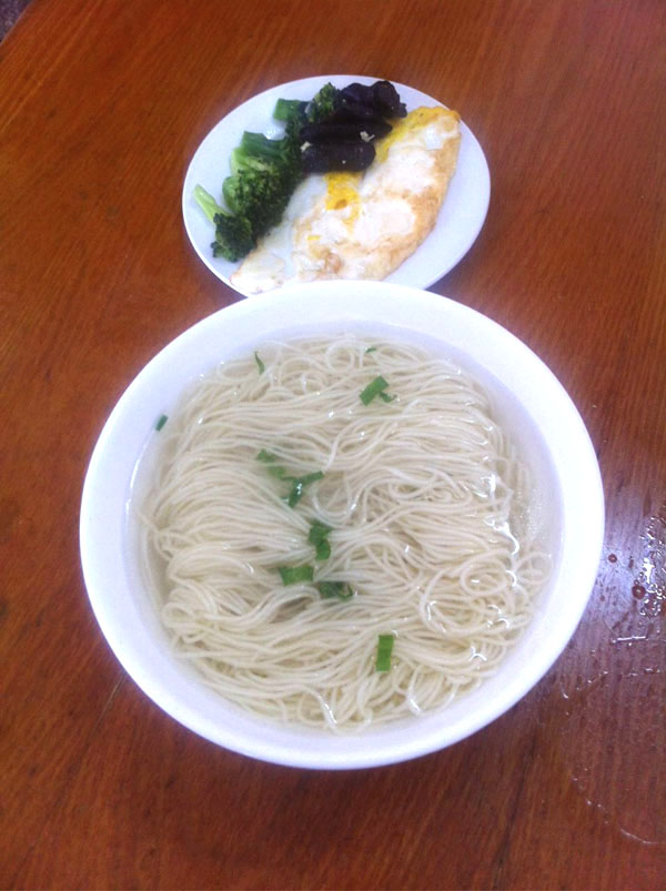 武進(jìn)人愛吃面,已經(jīng)是人盡皆知。而說起武進(jìn)人最愛吃哪種面,估計(jì)十個(gè)中有八個(gè)會(huì)說腸腸面。位于禮嘉鎮(zhèn)上的新八佰碗面館,就是以腸腸面在武進(jìn)面界擁有了眾多粉絲。 比起大部分武進(jìn)的家常面館,新八佰碗面館的門面還是挺大的,寬敞的廳堂里擺放著近10張桌子。中午11點(diǎn)不到,由于還沒到飯點(diǎn),店里的客人并不多。著裝清爽的老板娘顧紅梅正在后面的灶間里忙著炒菜!澳銊e看現(xiàn)在我們店里沒人,再過半小時(shí),人馬上就多起來了。早上9點(diǎn)前,好多人都是站著把面吃完的! 顧紅梅坦言,面館有如此好的生意,著實(shí)有點(diǎn)意外,但也在情理之中。 新八佰碗面館的前身也是一家面館,但是因?yàn)榉N種原因,最終在3年前關(guān)門大吉。“其實(shí)面館的市口很不錯(cuò),但我接手的時(shí)候,前任老板跟我說,一天只能做20斤面的生意!彪m然壓力很大,但顧紅梅表示,從一開始她就對面館充滿信心,“我一直覺得只要用心,沒有做不好的事! 新八佰碗面館的面是老武進(jìn)的做法,一碗面,三種做法,要么紅湯、要么白湯,還有紅湯拌面,翻花樣的是上面的澆頭。每天清晨3點(diǎn)半,顧紅梅就會(huì)準(zhǔn)時(shí)到店里,首先是煮湯底!拔覀兠骛^的湯料頭很足,用大骨頭、老母雞、開洋等足足燉夠3小時(shí)。”接著,就是做各種澆頭。由于一向擅長做菜,因此有很多澆頭都是顧紅梅親自掌勺。新八佰碗面館的澆頭,除了味美,量也是足得讓食客們直呼“老板要虧本了”!熬湍梦溥M(jìn)人最喜歡吃的大肉來說,足足是別人店里的兩倍大。每次我切肉的時(shí)候,我老公總在旁邊念叨,大點(diǎn),再大點(diǎn)!鳖櫦t梅笑著說道。 早上6點(diǎn)不到,面館就會(huì)迎來第一批客人。雖然店里雇了工人,但顧紅梅只要有空,都會(huì)搶著收拾碗筷。“根據(jù)客人們吃的量,我就知道面合不合他們的口味了。有時(shí)看到客人剩的特別多,我就會(huì)拉著問是不是不好吃。只要客人們提到的意見,我肯定一字不落地記下來,然后在以后的制作過程中一一改進(jìn)。對于很多武進(jìn)人而言, 一碗面,裝載的是小日子、小樂活,所以我必須把面做好吃嘍!鳖櫦t梅的如此用心,不由讓記者豎起了大拇指。 就這樣,一開始的20斤面量,一個(gè)月后就增加到了40斤,而現(xiàn)在最忙的時(shí)候,一天要用掉近100斤面。 說起招牌面,顧紅梅指了指墻上的菜單,“喏,寫在那呢,腸腸面!泵媸羌(xì)面,根根柔中帶勁,湯底濃油赤醬,看似很咸,其實(shí)不然,回味恰到好處。大腸處理得很干凈,腸腔里的油花幾乎都被去除了,糯糯的卻不見肥,再加一塊素雞或荷包蛋,武進(jìn)人喜歡的味道,這一碗面里就齊全了。