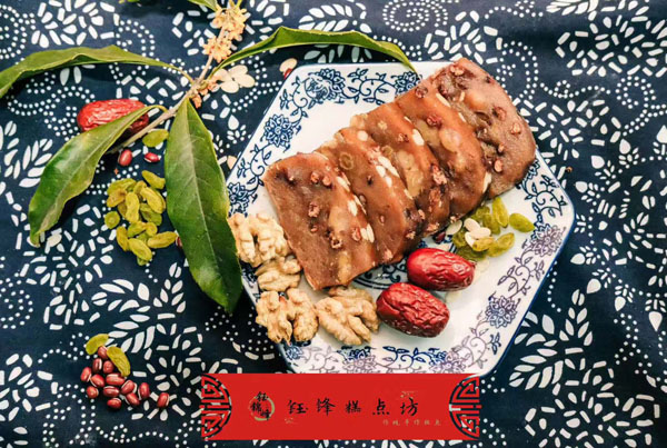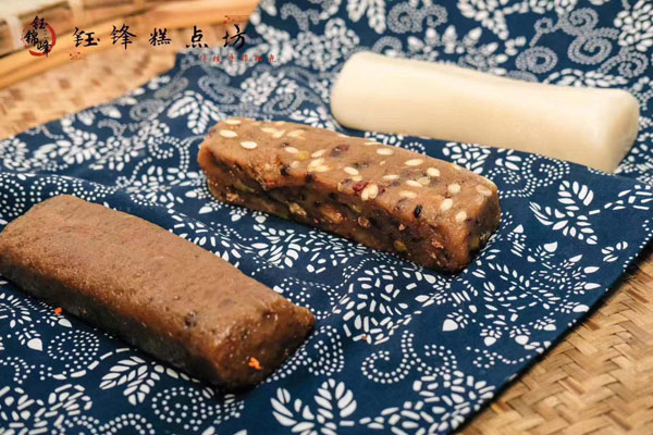 腳踏糕本名“年糕”,按常州周邊地區(qū)的風俗習慣,在春季前夕,各家各戶都要蒸年糕,吃年糕!案狻敝C音“高”,過年吃年糕被賜予“年年高”,一年高一年,鋒吉祥之意,表達這人們對未來美好生活的憧憬和良好的祝愿。今天小編要帶大家的就是一家至今保持著傳統(tǒng)手工制作的鈺鋒糕點坊。   鈺鋒糕點坊位于常州鄭陸鎮(zhèn)三皇廟范家莊,一個比較偏僻的村莊,雖然這家作坊不大,但香糯絲滑,軟糯適中,韌勁十足的腳踏糕吸引了無數(shù)的食客。制作一條腳踏糕要從淘米,浸泡,碾粉,鋪粉,一層一層的鋪下去,需要無數(shù)道制作工序,這些都是店主孫煥公公老周,憑著幾十年的經(jīng)驗,加上店主孫煥從不馬虎的決心!   這“腳踏”也并非赤腳上陣,而是把蒸好的糕倒入早以準備好的框子里,用布包裹好,上面再用薄膜包好,再蓋上布,再換上專門腳踏的布鞋,踩的時候要勻稱,左右腳要配合好,不然糕會高高低低,不平整,最后再拿蠟燭線拆成一條小長條,再拿帶包裝好,如此又香又糯的腳踏糕就大功告成了。   店主孫煥為了讓更多的人認識和了解常州腳踏糕的傳統(tǒng)文化和美食,她在傳統(tǒng)工藝中增加了適合現(xiàn)代文化的多種口味,她在糕里加入南瓜,紫薯,老紅糖,大麥汁,血糯米,核桃,葡萄干,紅棗等食材,做出五顏六色,純天然的口味,深受食客們的喜愛,不管是送人還是自己吃都非常新穎。