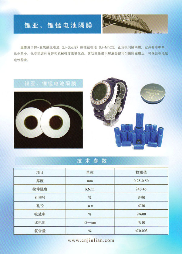 常州市久聯(lián)蓄電池材料有限公司位于經(jīng)濟(jì)發(fā)達(dá)、交通便捷、景色優(yōu)美的江蘇省常州市戚墅堰區(qū),成立于2001年,是專業(yè)從事各種電池隔板、隔膜材料和玻纖氈的生產(chǎn)廠家。產(chǎn)品主要有啟動(dòng)型蓄電池玻纖復(fù)合隔板、玻纖氈、鋰錳扣式、鋰亞電池用玻纖電池隔膜。產(chǎn)品均已通過(guò)ISO9001:2008認(rèn)證,產(chǎn)品廣泛使用于國(guó)外多家電池制造廠家,并獲得了一致好評(píng)。 目前我公司有兩條隔板生產(chǎn)線,一條隔膜生產(chǎn)線和一條玻氈生產(chǎn)線。