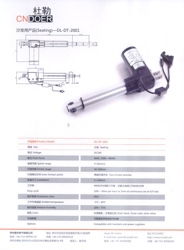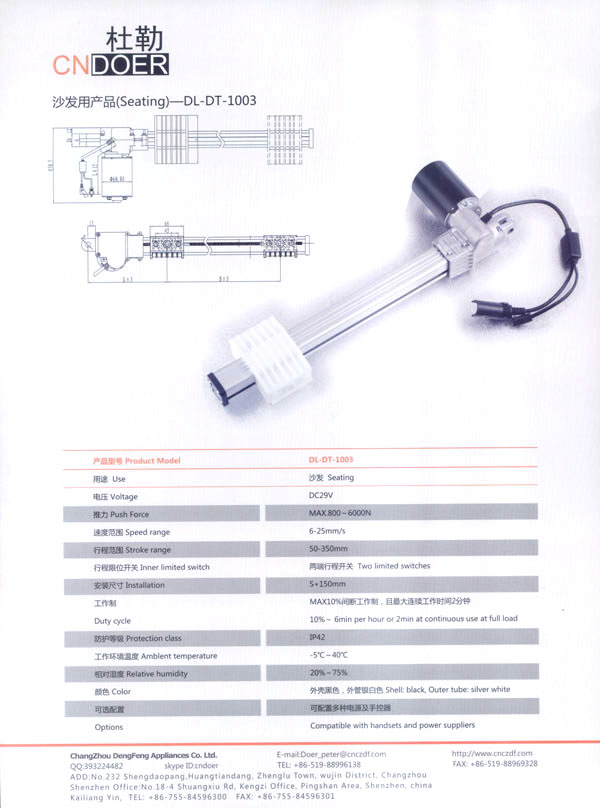 常州登豐電氣有限公司位于人杰地靈的江南古城—常州武進(jìn)區(qū)鄭陸鎮(zhèn)東青。緊臨常州火車站、滬寧高速公路、312國(guó)道、長(zhǎng)江港等,交通十分便捷。 公司最早創(chuàng)辦于1989年,歷經(jīng)20多年的艱苦創(chuàng)業(yè),本著“誠(chéng)信為本、品質(zhì)至上”的經(jīng)營(yíng)理念,公司生產(chǎn)的“武微”牌空調(diào)電機(jī)、“蘇杰”牌電動(dòng)車電機(jī)和采用國(guó)外先進(jìn)技術(shù)制作的動(dòng)力強(qiáng)勁、同時(shí)具有過載保護(hù)和消音裝置的綠色環(huán)保產(chǎn)品:“登豐”、“聚美”牌食物垃圾處理器。這些產(chǎn)品在全國(guó)各地市場(chǎng)均享有較高的知名度。 如今,公司為謀求新的發(fā)展,立足于國(guó)內(nèi),放眼于國(guó)際市場(chǎng),投入了大量的人力、財(cái)力、物力,購(gòu)置了先進(jìn)的全自動(dòng)生產(chǎn)流水線、全自動(dòng)繞線機(jī)和各類精密的測(cè)試儀器,多功能隔音房等設(shè)施,全新推出了具有美好前景和廣闊市場(chǎng)的主打產(chǎn)品:“杜勒”牌系列線性推桿及各類配套電機(jī)。該產(chǎn)品已通過ISO9001認(rèn)證,產(chǎn)品外觀新穎、制作精良、噪音小、操作靈活簡(jiǎn)便,暢銷國(guó)內(nèi),遠(yuǎn)銷國(guó)外,被廣泛應(yīng)用于電動(dòng)沙發(fā)、醫(yī)療護(hù)理床、手術(shù)床、按摩椅等眾多領(lǐng)域!岸爬铡碑a(chǎn)品已被越來越多的客戶所青睞和認(rèn)可! 公司竭誠(chéng)歡迎各界朋友、新老客戶前來洽談合作,共謀發(fā)展。我們也將不斷開拓創(chuàng)新,提高產(chǎn)品質(zhì)量,完善售后服務(wù)體系,努力打造成為行業(yè)先鋒企業(yè)!
