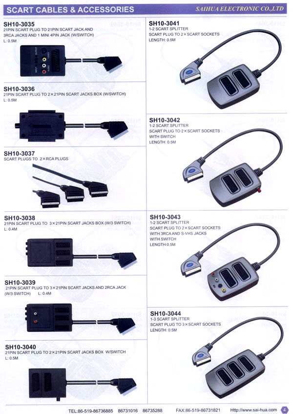 常州賽華漢誠電子有限公司系專業(yè)設計和出口電子元器件的制造商,公司成立于1992年,座落于常州市武進區(qū)禮嘉鎮(zhèn)坂上工業(yè)園區(qū)。主要生產(chǎn)音視頻接插件,SCART線,電源線及電話連接件。公司擁有精良的生產(chǎn)設備及完善的檢測儀器,并獲得ISO9001-2000質量認證,F(xiàn)公司員工200余人,其中工程技術人員15人。產(chǎn)品遠銷歐美,東南亞等國家,我們秉承“一流的品質,一流的服務”。歡迎海內外客戶來電來函。