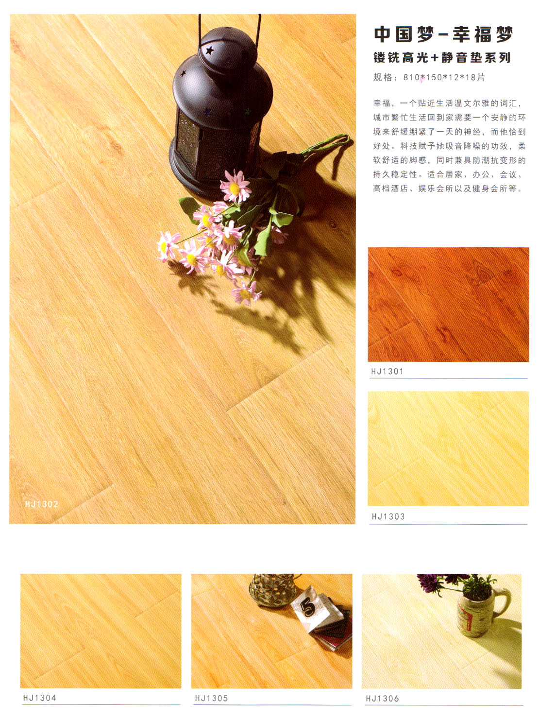 常州市圣豐地板廠是一家生產(chǎn)和銷售木質(zhì)強化地扳專業(yè)企業(yè),集裝飾板材的開發(fā)研究、制造與一體。公司引進德國設(shè)備和技術(shù)研制而成的超耐磨環(huán)保地板。一流的生產(chǎn)設(shè)備,加上嚴格的操作流程.精細的加工工藝.嫻熟的專業(yè)技術(shù),使圣豐地板廠脫穎而出,傲然與同行榮獲常州市政府放心消費先進單位。 圣豐地板廠不僅在耐磨、耐高溫、防水、防潮等一般特性上更進一層,更重要的是以大眾健康為己任,綠色、健康和環(huán)保一直是圣豐最關(guān)注的問題,對于游離甲醇的釋放量,圣豐永遠是將其控制在最低限度?梢哉f,每一塊圣豐地板,都是綠色健康產(chǎn)品。 本廠自成立以來,已經(jīng)生產(chǎn)和銷售了上千萬平方的木質(zhì)強化地板,銷售至全國各地,力爭出口至東歐、中東、東南亞、美洲等國家和地區(qū),并因質(zhì)量可靠,價格公道,廣受好評。 目前我們主要經(jīng)營“惠居”、 “靈盛”牌木質(zhì)強化地板,現(xiàn)在已經(jīng)開發(fā)出水晶面、羽絲面、浮雕面、立體刀砍紋、手抓紋、4v仿實木、金剛淋漆面、模壓面、橡木真木紋、防水系列等多個系列產(chǎn)品,涵蓋了市場上所出現(xiàn)的所有產(chǎn)品系列! 目前本廠正飛速發(fā)展,我們面向全國廣泛招集經(jīng)銷商,因此歡迎有志之士來電來函洽談業(yè)務(wù)!