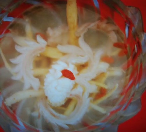 張萬成羊莊一家綜合性的公司,下設(shè)酒店,羊產(chǎn)品加工廠,屠宰廠,山羊養(yǎng)殖場(chǎng)。 酒店位于常州西夏墅浦河村,酒店羊宴規(guī)模占地30畝,酒店主要經(jīng)營(yíng)特色全羊宴。 一個(gè)祖?zhèn)鞯臍⒀虼髴,傳到張萬成,已是第六代了。張家的羊肉,素來以肉質(zhì)鮮美著稱,張萬成羊莊的主人張建龍是第六代傳人,張家的羊肉素來以肉質(zhì)鮮美著稱,從常州新北區(qū)沿黃河西路往機(jī)場(chǎng)方向直行至羅溪右轉(zhuǎn),穿過滬寧高速高架橋后不遠(yuǎn)處左拐沿翠屏湖路直走便能看到張萬成羊莊,酒店上下共有三層,2000多平方米經(jīng)營(yíng)面積,能同時(shí)接待近30桌客人的規(guī)模。有自己的羊圈和屠宰場(chǎng),每天殺20多只,菜式近100道。光是原料,就從原來羊身上的幾個(gè)主要部位,增加到除了羊牙齒以外的一只整羊全部可以入菜。烹制方式,更是在本土單一的燒、炒、煮基礎(chǔ)上,借鑒了東北、廣東、四川等地的烹羊特色,增加了蒸、涮、烤、煎、炸等多種方式。 注重原汁原味的冷菜 白切羊肉:精選羊頸部的活肉精制而成,肥瘦適中,絲毫沒有一般羊肉的膻味,沾少許張萬成羊莊秘制的醬料,口感非常好。 美味羊舌:張家的羊舌感覺是用特殊的醬料腌制過的,咸中略有甜味,口感鮮嫩卻肥而不膩,味道很香。 除了白切羊肉和羊舌以外還有許多冷菜品種,如羊肚、羊心、羊耳朵等。。 火候控制精準(zhǔn)的炒菜 炒羊肝:地道的農(nóng)家風(fēng)味,與大蒜葉同炒,蒜香濃郁,羊肝鮮嫩,這羊肝可是火候菜,羊肝鮮嫩與否不但取決于廚師對(duì)火候的掌握,還在于上桌放置時(shí)間的長(zhǎng)短,所以羊肝上桌后要盡快食用,看羊肝是否鮮嫩,只需用筷子挑起并輕輕抖動(dòng),有彈性者為佳。 美味羊?qū)殻阂跃曼S、鮑味菇爆炒的羊?qū),說是滋補(bǔ)壯陽(yáng)的一道金貴菜,配料講究的燒菜系列 宮廷燴羊肚:較為金貴的菜品,配菜貴于主料,是以名貴的素鮑和新鮮的筍絲與羊肚同煮,口感濃郁,營(yíng)養(yǎng)豐富。 海參白燒羊肉:將取自7個(gè)月大羔羊身上的帶皮腿肉與海參一同煨煮,菜肴美容滋補(bǔ),兩種鮮味互相補(bǔ)益達(dá)到完美交融狀態(tài),口感甚佳。 魚羊鮮:新鮮的青魚配上羊肉,既有本地羊肉的肥嫩,又有魚肉的鮮香,鮮!鮮!古代人造字就是有道理!”店里可以根據(jù)客人的需要配以魚回魚、鯰魚、鱖魚等。 特色的羊宴點(diǎn)心 羊肉餛飩:羊莊老板自創(chuàng)的羊宴點(diǎn)心,看似普通的油燜跑蛋卻另有乾坤,將蛋掀開便能看見藏于其中的羊肉菜餡餛飩,菜和肉都是自家新鮮的原料,很好吃。 手工搟面:不知道是因?yàn)槊媸钦嬲檬止{制還是因?yàn)榧尤肓缩r味十足的羊湯,總之味道非常好,面勁道,湯也鮮美! 張萬成羊莊的羊湯也是遠(yuǎn)近聞名,因?yàn)槭亲鎮(zhèn)鞯氖炙,做出來的羊湯不腥不膻,香醇不膩,味道十分鮮美,加入粉絲或者面條更是難得的美味。
