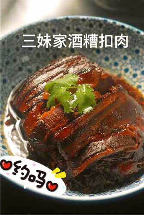 橫林有個地兒叫楊歧村,有句老話叫“上不靠橫林,下不靠洛社”,說的就是那里。 楊歧村過去幾十米就是無錫地界,今天小編推薦的土菜館「三妹農(nóng)家小吃」就在那里。 當小編一路七拐八拐,中午11點半到達那里時,門面雖然很簡陋,但店門口已然停了好多輛車。剛進入店門,就發(fā)現(xiàn)這家店人氣好旺,十幾桌基本都坐滿了。(所以說,人不可貌相,餐館也是如此) "三妹,三妹!"店里客人叫喚聲不絕于耳,原來老板娘叫楊三妹啊。你們忙,我們先隨便看看。 過大廳到后堂就是冷菜間,里面有白切草雞、鹵豬干、拌馬蘭等十幾種土菜,尤其那草雞濃郁的香味,讓小編肚子叫得咕咕響。 往前是活貨區(qū),各種鮮魚活蝦一格一格區(qū)分養(yǎng)著,再里面是開放式廚房,每個客人都可以看到,選用的放心食材和調(diào)料。  吃貨老板娘,楊三妹,三妹,從小到大一直有個嗜好,就是愛美味,不光喜歡吃,還喜歡鉆研做。2010年,「三妹小吃」開張,因為獨具特色,在楊歧這個小村一炮而紅。要說楊三妹最拿手的菜是什么,當然是酒糟扣肉。 糟本來就是一種做米酒留下來后,用來吊燒酒的。但是我們常州人很聰明,把糟和肉放在一起,做成一道美味菜,叫酒糟扣肉。 楊三妹的酒糟扣肉之所以有名,得益于母親的悉心傳授。記憶里小辰光,她母親做的扣肉總比別人家的香!冈恪梗勍昃坪罅粝碌脑,會與炒熟的新糯米,拌和在一起,陳一年!溉狻,選擇本地養(yǎng)殖的良種豬,沒有臊味。 長大后,她把記憶里的美味延續(xù)了下來。精益求精的她,對扣肉的制作過程要求很嚴格。別人家制作都是把肉直接切大塊,排碗,熬槽,蒸爛。三妹說,這樣烹制,肉汁的鮮美會流失很多,口感減分不少。她的做法是精選新鮮豬五花,整大塊清蒸,保留肉汁的鮮美,之后再切塊紅燒,排碗,熬糟,澆蓋,再蒸。 三妹酒糟扣肉,出鍋后,色澤紅潤,味道鮮美。既有酒的香味,又有肉的鮮美,而且經(jīng)過蒸煮后,油脂都出來了,爽口不油膩。