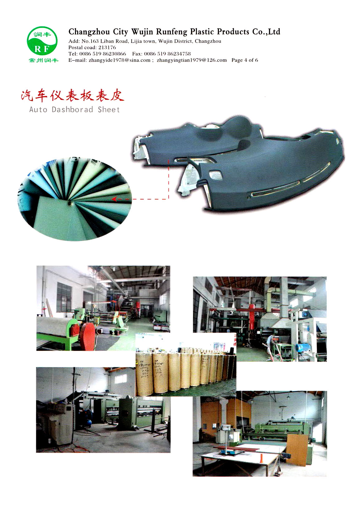 本公司專業(yè)生產(chǎn)汽車儀板軟化表皮、PVC門護板表皮、PVC復(fù)合制品、壓延薄膜制品,(塑料制品除醫(yī)用塑料制品),車輛零部件,機械電器零部件,電子元件,沖壓件制造,加工無妨制品,玻纖氈(GFP板),麻氈板等。本公司的產(chǎn)品在國內(nèi)一線乘用車上廣泛使用。產(chǎn)品通過國家汽車質(zhì)量監(jiān)督檢驗中心檢測,并取得了各種證書,如亞瑟國際認證;ISO/TS1694:2009等。