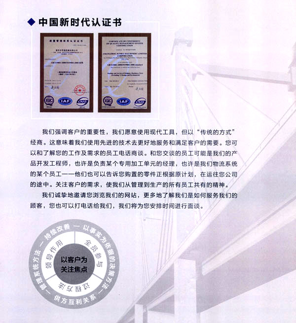 公司于2007年6月通過IS09001質量體系認證。本著信譽第一,誠實合作,嚴格管理為服務宗旨,全員參與、持續(xù)改善。提升品質、準時交貨、客戶滿意的質量方針。為客戶提供優(yōu)質的產(chǎn)品,周到的服務。嚴格的品質,快捷的送貨,完善的生產(chǎn)設備,一流的技術,使公司在同行業(yè)中占有一席之地。