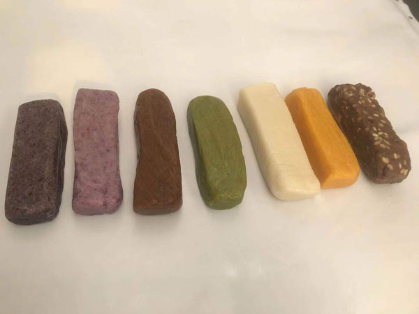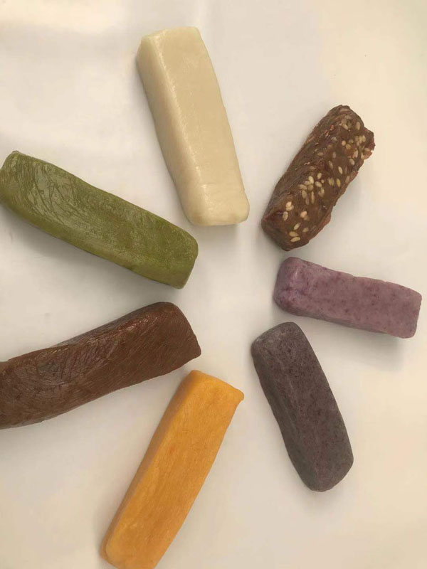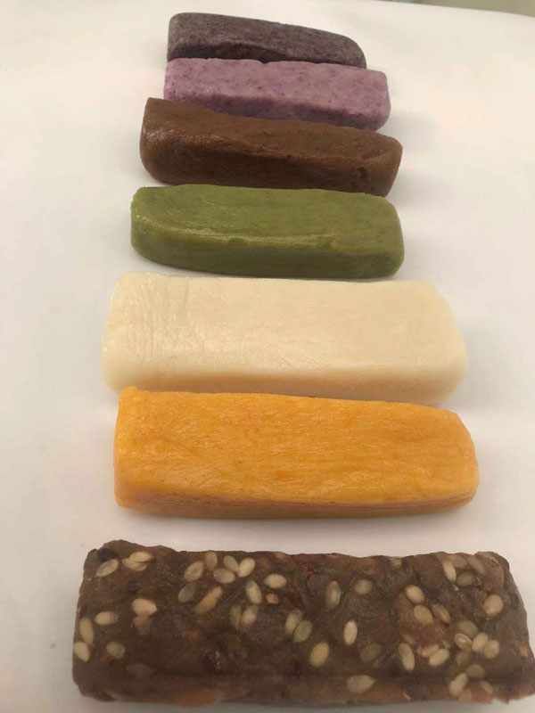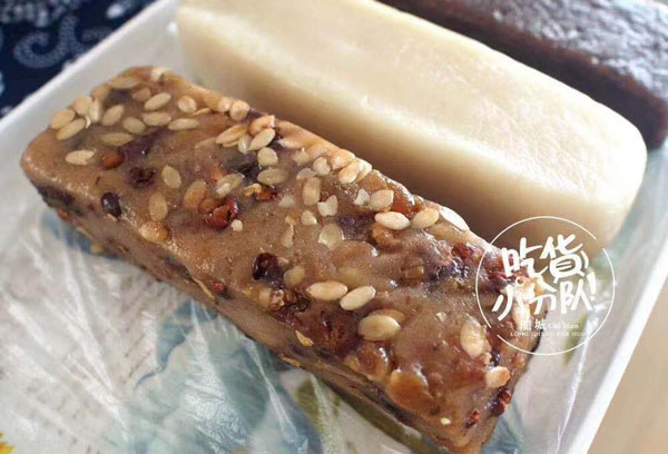 腳踏糕本名“年糕”,按常州周邊地區(qū)的風(fēng)俗習(xí)慣,在春季前夕,各家各戶都要蒸年糕,吃年糕。“糕”諧音“高”,過年吃年糕被賜予“年年高”,一年高一年,鋒吉祥之意,表達(dá)這人們對(duì)未來美好生活的憧憬和良好的祝愿。今天小編要帶大家的就是一家至今保持著傳統(tǒng)手工制作的鈺鋒糕點(diǎn)坊。 鈺鋒糕點(diǎn)坊位于常州鄭陸鎮(zhèn)三皇廟范家莊,一個(gè)比較偏僻的村莊,雖然這家作坊不大,但香糯絲滑,軟糯適中,韌勁十足的腳踏糕吸引了無數(shù)的食客。制作一條腳踏糕要從淘米,浸泡,碾粉,鋪粉,一層一層的鋪下去,需要無數(shù)道制作工序,這些都是店主孫煥公公老周,憑著幾十年的經(jīng)驗(yàn),加上店主孫煥從不馬虎的決心! 這“腳踏”也并非赤腳上陣,而是把蒸好的糕倒入早以準(zhǔn)備好的框子里,用布包裹好,上面再用薄膜包好,再蓋上布,再換上專門腳踏的布鞋,踩的時(shí)候要?jiǎng)蚍Q,左右腳要配合好,不然糕會(huì)高高低低,不平整,最后再拿蠟燭線拆成一條小長(zhǎng)條,再拿帶包裝好,如此又香又糯的腳踏糕就大功告成了。 店主孫煥為了讓更多的人認(rèn)識(shí)和了解常州腳踏糕的傳統(tǒng)文化和美食,她在傳統(tǒng)工藝中增加了適合現(xiàn)代文化的多種口味,她在糕里加入南瓜,紫薯,老紅糖,大麥汁,血糯米,核桃,葡萄干,紅棗等食材,做出五顏六色,純天然的口味,深受食客們的喜愛,不管是送人還是自己吃都非常新穎。 (重陽糕)重陽糕的由來,九九重陽,九是陽數(shù),也是陽數(shù)中最大的數(shù),九月初九,兩九相重,為之重陽,古人有重陽登高的習(xí)俗。高于糕同意,寓意人活九十九,生活步步高,秋景勝春光,夕陽無限好。夕陽紅成了老人對(duì)自己美好的祝愿和希望,所以從某種意義上來講它“祝壽糕”“長(zhǎng)壽糕”重陽糕在常州地區(qū)是家喻戶曉的,下面小編帶你去一家至今保持傳統(tǒng)手工制作的鈺鋒糕點(diǎn)坊看一下吧。鈺鋒糕點(diǎn)坊位于常州市天寧區(qū)鄭陸鎮(zhèn)三皇廟范家莊,偏僻的小村莊,雖然有點(diǎn)偏僻,但是每到重陽節(jié)到來,每天還是有很多食客來訂購和購買店主孫煥做的多種口味的重陽糕。要想做出松軟香糯的重陽糕,原材料和糯米和梗米的配比也很重要,調(diào)整好比例開始淘米,浸泡,釓粉,放入糖攪拌,篩粉,糕底部放上荷葉,中間的餡心都是孫煥自己熬制,口感,香糯松軟,店主孫煥為了吸引更多現(xiàn)代年輕人,她在粉里加入南瓜,紫薯,紅糖,血糯等,色彩搭配很出跳,吸引來了很多食客,孫煥2019年開始自愿捐贈(zèng)重陽糕給敬老院,她說這樣的公益活動(dòng)自己很喜歡,雖然金額不大,缺表達(dá)了她的一份心意,并稱這樣的公益活動(dòng)她每年都會(huì)做。