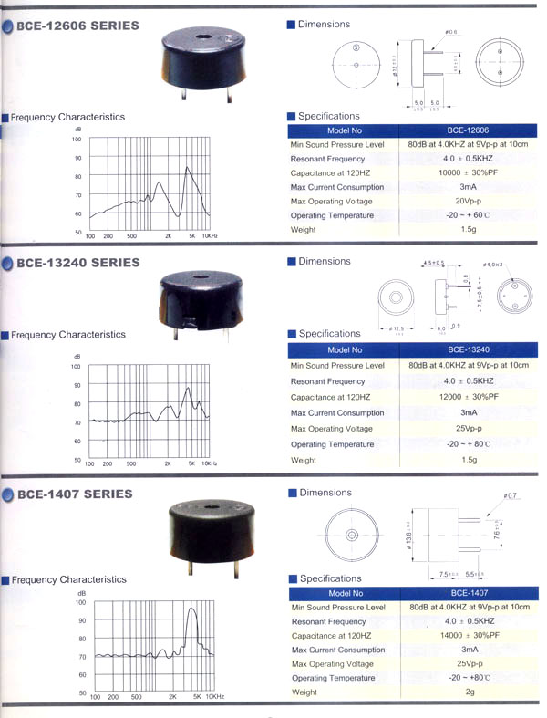 本公司生產(chǎn)的蜂鳴器結(jié)構(gòu)緊密,材質(zhì)輕,功耗低,質(zhì)量可靠,使用方便,價格合理,采用最新技術(shù)電子元件。廣泛應(yīng)用于打印機(jī)、電話、定時器、尋呼機(jī)、洗衣機(jī)、取款機(jī)、報警器、電腦終端機(jī)、復(fù)印機(jī)、電唱機(jī)、汽車及摩托車電子設(shè)備、空調(diào)設(shè)備、萬用表、遙控裝置、各種安全裝置以及便攜或電池式迷你型裝置。