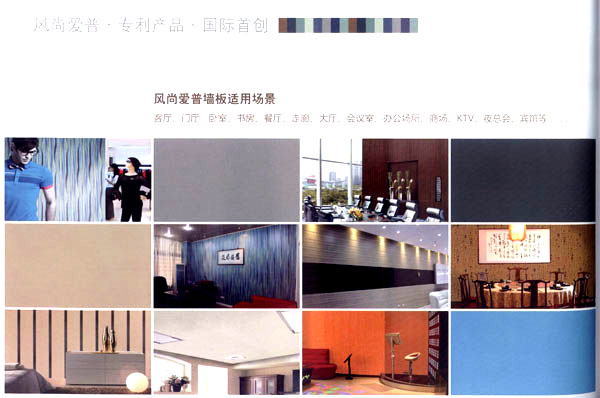 常州愛普裝飾材料有限公司位于美麗富饒的江蘇省常州市,是一家專業(yè)從事墻板設(shè)計與生產(chǎn)的企業(yè)。年生產(chǎn)墻板300萬平方米。"愛普墻板"是我公司生產(chǎn)的一種新型墻面裝飾材料,產(chǎn)品由人造金剛石耐磨層、三聚氰胺裝飾紙、EO級HDF材料、高檔防潮平衡紙,采用先進(jìn)的德國生產(chǎn)設(shè)備,通過一流的生產(chǎn)工藝--一次性熱壓技術(shù)壓貼成型。具有環(huán)保、耐磨、防刮擦、防潮、阻燃、隔音、保溫、抗沖擊、抗污等優(yōu)點。經(jīng)中華人民共和國專利認(rèn)定為 專利產(chǎn)品(專利號:ZL200820127448.X),為國際首創(chuàng),其知識產(chǎn)權(quán)受國家法律保護(hù)。 愛普墻板經(jīng)建科院權(quán)威部門檢測,其所有物質(zhì)性能指標(biāo)均符合國家建材行業(yè)標(biāo)準(zhǔn),產(chǎn)品遠(yuǎn)銷美國、加拿大、澳大利亞、土耳其、俄羅斯、馬來西亞等國家和地區(qū),以其優(yōu)秀的產(chǎn)品與新穎的設(shè)計贏得了廣泛贊譽(yù),經(jīng)歷五年的發(fā)展,愛普裝飾材料公司已成為墻板行業(yè)的領(lǐng)軍企業(yè)。 公司以"開拓、競爭、誠信、服務(wù)"的企業(yè)精神,"本著質(zhì)量第一、用戶第一"的原則,依托先進(jìn)的工藝裝備、雄厚的技術(shù)力量,完善的企業(yè)管理制度,竭誠為用戶提供優(yōu)質(zhì)的產(chǎn)品與良好的服務(wù)。