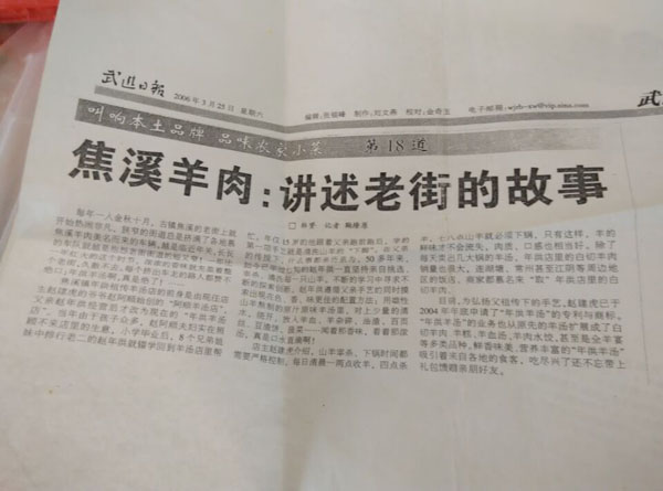 <年洪羊肉>沿著傳統(tǒng)的手藝、獨特的配方,煮制出的羊肉鮮味美(真空包裝),是新老顧客冬令時節(jié)贈送親朋好友之佳品,被評為明都杯武進“十大農(nóng)家特色菜”。 焦溪羊肉遠近聞名,然而,食客中鮮有關(guān)注焦溪羊肉之加工鏈的。如今,焦溪的羊肉經(jīng)營,從活羊采購,到屠宰、分割、羊雜處理、烹飪、上桌,其分工已經(jīng)細化。在焦溪從事活羊屠宰的,多數(shù)是江陰南閘人。宰殺后去頭的肥羊,個頭不亞于百斤開外的優(yōu)質(zhì)肉豬,皮色白凈、肉質(zhì)鮮亮,經(jīng)過精心的烹飪,最終成為道道佳肴。
