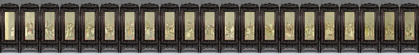 4 牙刻《三國演義圖》,作者懷著對牙刻藝術(shù)的鐘愛,對中華古老文化之敬仰,肩負時代之重托,賦予作者堅韌不撥的決心和毅力。牙刻《三國演義》創(chuàng)作靈感被點燃,博大、深遂、精致而具有鮮明文化特質(zhì)的牙刻作品自然天成,得以成就夢寐以求的作品。由微雕63萬余漢字《三國演義》全文作為灰色背景,105枚金石名章烘托出《三國演義》名著中各領(lǐng)風(fēng)騷、形象鮮明的126個主要人物。由21扇牙刻紫檀組合成3.28米長的巨型屏風(fēng),寓意著對美好21世紀(jì)的憧憬。小牙刻大題材、大系列、大氣魄、大氣象,最終產(chǎn)生巨大的震撼力。牙刻《三國演義》如此恢弘絕無僅有、前無古人。從表象看牙刻與微雕的融合、書法金石與人物的呼應(yīng)、灰色背景與墨彩的烘托,精雕紫檀與微雕牙刻的對照,而深層次看這些都是繪畫語言在牙刻藝術(shù)中的完美體現(xiàn),也突破了千余年來固守線刻傳統(tǒng)的窠臼,提升了當(dāng)今牙刻藝術(shù)的品位并注入新的活力,將牙刻從藝人勞動升華為藝術(shù)家從事的創(chuàng)作。這件作品是我歷時五年于2001年10月雕刻而成,一經(jīng)展出引起了工藝美術(shù)界高度關(guān)注,獲得了首屆中國華東工藝美術(shù)精品展金獎、第三屆國家級工藝美術(shù)大師精品展金獎、首屆中國工藝美術(shù)學(xué)會最高學(xué)術(shù)獎“華藝杯”金獎。