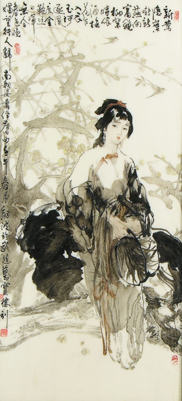 5 牙刻《蕭繹詩意圖》這是一幅充滿詩情畫意離愁別緒的現(xiàn)代水墨牙刻作品。運用多種牙刻手法,極盡寫意人物畫之韻味,用刻刀刻出大寫意潑墨、積墨、彩墨以及水淋淋的滋潤感,在作品中得以淋漓盡致的彰現(xiàn)。以簡勝繁,簡而精妙,簡而品高,刀法簡而意境深遂,把少婦春日盼歸人的離愁別緒刻劃得愈加含情脈脈、楚楚動人,給人以無限的遐思,滿腹的風(fēng)情。