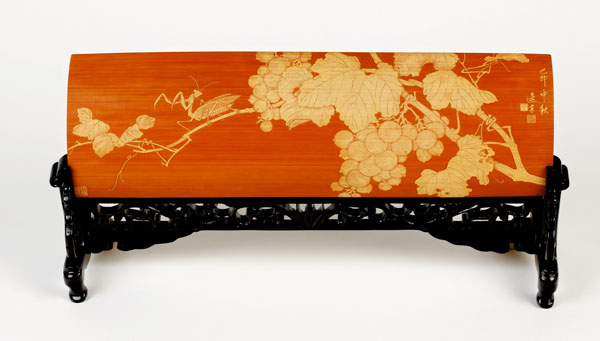 徐敏,一九七四年生于江蘇常州,擅長山水油畫。師從竹刻家范遙青研習竹刻至今有二十余載。其作品受到竹刻權威鑒賞家王世襄認可,并親筆為她題字褒獎,F為常州市非物質文化遺產傳承人。