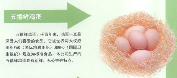 常州五星禽蛋有限公司創(chuàng)建于1990年,是常州市最大的禽蛋生產(chǎn)基地。公司秉承“辦實(shí)事、服務(wù)城市;上水平,掙創(chuàng)效益”的經(jīng)營宗旨。注重科技開發(fā)與管理創(chuàng)新,全力打造“五禧”品牌。公司于2000年通過了ISO9002質(zhì)量體系認(rèn)證;2004年又通過了無公害雞蛋產(chǎn)地和產(chǎn)品認(rèn)證,并獲兩項(xiàng)專利。 經(jīng)多年努力實(shí)現(xiàn)了“五禧”產(chǎn)品系列化,F(xiàn)公司每年向市場提供有“五禧”鮮雞蛋,“五禧”土雞蛋,“五禧”ELC蛋,“五禧”綠殼草雞蛋,成為了不同消費(fèi)群體的理想選擇!拔屐钡岸啻螛s獲常州市場知名商標(biāo)稱號(hào)。