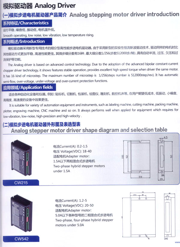 常州創(chuàng)偉電機(jī)電器有限公司成立于1995年,是一家專業(yè)從事步進(jìn)電機(jī)及驅(qū)動控制生產(chǎn)、研發(fā)的企業(yè),F(xiàn)已擁有一批富有經(jīng)驗(yàn)的生產(chǎn)和開發(fā)隊(duì)伍。企業(yè)在多年的發(fā)展過程中,為全國各地各行業(yè)提供了大量質(zhì)優(yōu)價廉的步進(jìn)電機(jī)及控制產(chǎn)品。應(yīng)用領(lǐng)域涉及機(jī)器人、音樂噴泉、數(shù)控機(jī)床設(shè)備、工業(yè)電子自動化設(shè)備、醫(yī)療器械、廣告器材、舞臺燈光設(shè)備、印刷設(shè)備、紡織機(jī)械、計(jì)算機(jī)外部應(yīng)用設(shè)備等等。 公司產(chǎn)品先后通過ISO9001質(zhì)量管理體系認(rèn)證,RoHS認(rèn)證,CE認(rèn)證。公司現(xiàn)擁有全自動繞線機(jī)、調(diào)壓式充磁機(jī)、萬能外圓磨床、數(shù)控機(jī)床等設(shè)備50余臺,固定資產(chǎn)3000萬元,員工總數(shù)200余人,其中技術(shù)人員25人。年生產(chǎn)各類電機(jī)100萬臺。依靠齊全的檢測設(shè)備、完善的檢測手段、嚴(yán)格的質(zhì)量標(biāo)準(zhǔn),我們一直致力于提高產(chǎn)品的質(zhì)量和性能。對于每一個客戶我們都提供自始自終的技術(shù)服務(wù)和產(chǎn)品售后服務(wù)。 我公司的主要產(chǎn)品有20BH系列、28BH系列、35BH系列、39BH系列、42BH系列、42BHH系列、57BH圓形系列、57BHH方形系列、60BHH方形系列、86BH圓形系列、86BHH方形系列,以及110BHH系列的四相(二相)混合式步進(jìn)電。CW60BL、CW63BL、CW70BL、CW92BL系列無刷電機(jī)也相繼上市。另外步進(jìn)電機(jī)驅(qū)動器CW215、CW230、CW5045、CW8060、CW6060AC、CW1108以及全新數(shù)字式驅(qū)動器CWD230、CWD556、CWD860H、CW2M2208、CW3M2208和閉環(huán)電機(jī)驅(qū)動器CWDS556,CWDS660,CWDS860H,CWDS880L,CWDS1108,CWDS2206等系列也暢銷全球。另外本公司也可對外承接各種步進(jìn)電機(jī)及相關(guān)工控系統(tǒng)的應(yīng)用系統(tǒng)工程。 熱忱歡迎國內(nèi)外客商前來洽談及合作。