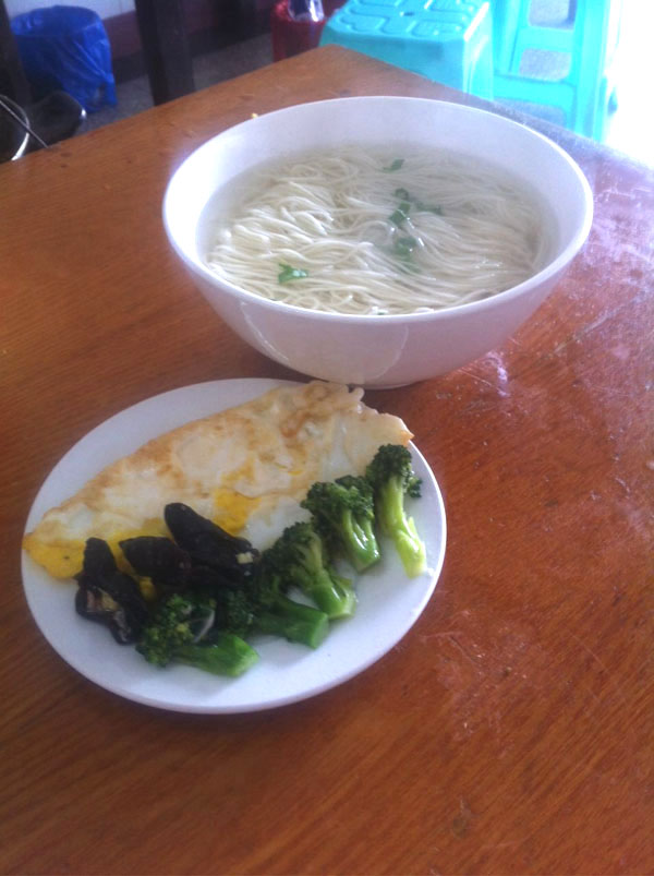 武進(jìn)人愛吃面,已經(jīng)是人盡皆知。而說起武進(jìn)人最愛吃哪種面,估計(jì)十個(gè)中有八個(gè)會(huì)說腸腸面。位于禮嘉鎮(zhèn)上的新八佰碗面館,就是以腸腸面在武進(jìn)面界擁有了眾多粉絲。 比起大部分武進(jìn)的家常面館,新八佰碗面館的門面還是挺大的,寬敞的廳堂里擺放著近10張桌子。中午11點(diǎn)不到,由于還沒到飯點(diǎn),店里的客人并不多。著裝清爽的老板娘顧紅梅正在后面的灶間里忙著炒菜。“你別看現(xiàn)在我們店里沒人,再過半小時(shí),人馬上就多起來了。早上9點(diǎn)前,好多人都是站著把面吃完的! 顧紅梅坦言,面館有如此好的生意,著實(shí)有點(diǎn)意外,但也在情理之中。 新八佰碗面館的前身也是一家面館,但是因?yàn)榉N種原因,最終在3年前關(guān)門大吉!捌鋵(shí)面館的市口很不錯(cuò),但我接手的時(shí)候,前任老板跟我說,一天只能做20斤面的生意!彪m然壓力很大,但顧紅梅表示,從一開始她就對(duì)面館充滿信心,“我一直覺得只要用心,沒有做不好的事! 新八佰碗面館的面是老武進(jìn)的做法,一碗面,三種做法,要么紅湯、要么白湯,還有紅湯拌面,翻花樣的是上面的澆頭。每天清晨3點(diǎn)半,顧紅梅就會(huì)準(zhǔn)時(shí)到店里,首先是煮湯底。“我們面館的湯料頭很足,用大骨頭、老母雞、開洋等足足燉夠3小時(shí)!苯又,就是做各種澆頭。由于一向擅長做菜,因此有很多澆頭都是顧紅梅親自掌勺。新八佰碗面館的澆頭,除了味美,量也是足得讓食客們直呼“老板要虧本了”!熬湍梦溥M(jìn)人最喜歡吃的大肉來說,足足是別人店里的兩倍大。每次我切肉的時(shí)候,我老公總在旁邊念叨,大點(diǎn),再大點(diǎn)!鳖櫦t梅笑著說道。 早上6點(diǎn)不到,面館就會(huì)迎來第一批客人。雖然店里雇了工人,但顧紅梅只要有空,都會(huì)搶著收拾碗筷!案鶕(jù)客人們吃的量,我就知道面合不合他們的口味了。有時(shí)看到客人剩的特別多,我就會(huì)拉著問是不是不好吃。只要客人們提到的意見,我肯定一字不落地記下來,然后在以后的制作過程中一一改進(jìn)。對(duì)于很多武進(jìn)人而言, 一碗面,裝載的是小日子、小樂活,所以我必須把面做好吃嘍!鳖櫦t梅的如此用心,不由讓記者豎起了大拇指。 就這樣,一開始的20斤面量,一個(gè)月后就增加到了40斤,而現(xiàn)在最忙的時(shí)候,一天要用掉近100斤面。 說起招牌面,顧紅梅指了指墻上的菜單,“喏,寫在那呢,腸腸面!泵媸羌(xì)面,根根柔中帶勁,湯底濃油赤醬,看似很咸,其實(shí)不然,回味恰到好處。大腸處理得很干凈,腸腔里的油花幾乎都被去除了,糯糯的卻不見肥,再加一塊素雞或荷包蛋,武進(jìn)人喜歡的味道,這一碗面里就齊全了。