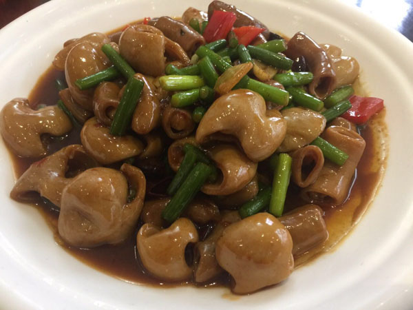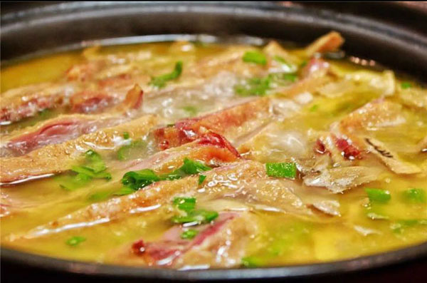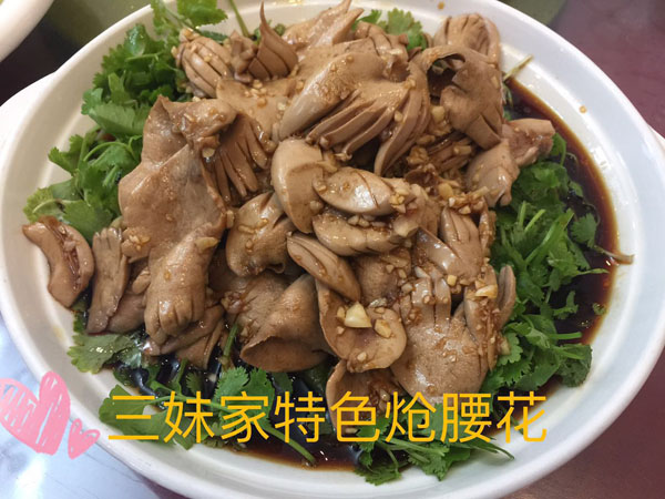 橫林有個地兒叫楊歧村,有句老話叫“上不靠橫林,下不靠洛社”,說的就是那里。 楊歧村過去幾十米就是無錫地界,今天小編推薦的土菜館「三妹農(nóng)家小吃」就在那里。 當(dāng)小編一路七拐八拐,中午11點(diǎn)半到達(dá)那里時,門面雖然很簡陋,但店門口已然停了好多輛車。剛進(jìn)入店門,就發(fā)現(xiàn)這家店人氣好旺,十幾桌基本都坐滿了。(所以說,人不可貌相,餐館也是如此) "三妹,三妹。⒌昀锟腿私袉韭暡唤^于耳,原來老板娘叫楊三妹啊。你們忙,我們先隨便看看。 過大廳到后堂就是冷菜間,里面有白切草雞、鹵豬干、拌馬蘭等十幾種土菜,尤其那草雞濃郁的香味,讓小編肚子叫得咕咕響。 往前是活貨區(qū),各種鮮魚活蝦一格一格區(qū)分養(yǎng)著,再里面是開放式廚房,每個客人都可以看到,選用的放心食材和調(diào)料。  吃貨老板娘,楊三妹,三妹,從小到大一直有個嗜好,就是愛美味,不光喜歡吃,還喜歡鉆研做。2010年,「三妹小吃」開張,因?yàn)楠?dú)具特色,在楊歧這個小村一炮而紅。要說楊三妹最拿手的菜是什么,當(dāng)然是酒糟扣肉。 糟本來就是一種做米酒留下來后,用來吊燒酒的。但是我們常州人很聰明,把糟和肉放在一起,做成一道美味菜,叫酒糟扣肉。 楊三妹的酒糟扣肉之所以有名,得益于母親的悉心傳授。記憶里小辰光,她母親做的扣肉總比別人家的香!冈恪,釀完酒后留下的糟,會與炒熟的新糯米,拌和在一起,陳一年!溉狻梗x擇本地養(yǎng)殖的良種豬,沒有臊味。 長大后,她把記憶里的美味延續(xù)了下來。精益求精的她,對扣肉的制作過程要求很嚴(yán)格。別人家制作都是把肉直接切大塊,排碗,熬槽,蒸爛。三妹說,這樣烹制,肉汁的鮮美會流失很多,口感減分不少。她的做法是精選新鮮豬五花,整大塊清蒸,保留肉汁的鮮美,之后再切塊紅燒,排碗,熬糟,澆蓋,再蒸。 三妹酒糟扣肉,出鍋后,色澤紅潤,味道鮮美。既有酒的香味,又有肉的鮮美,而且經(jīng)過蒸煮后,油脂都出來了,爽口不油膩。