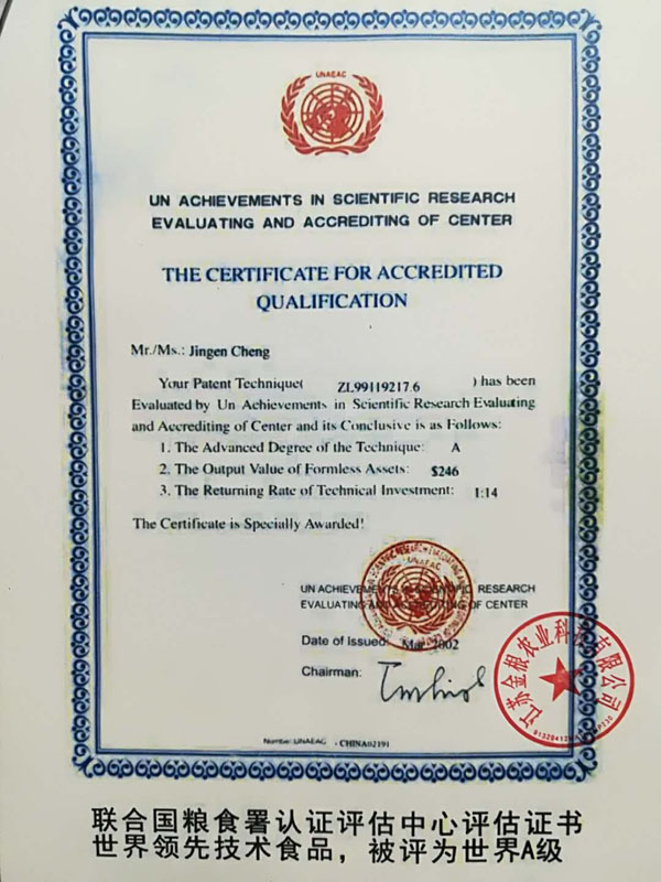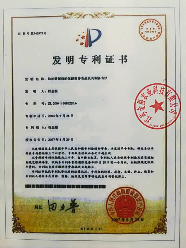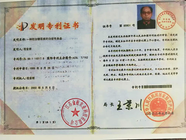 江蘇金根農(nóng)業(yè)科技有限公司是專業(yè)從事無糖食品、糖尿病、肥胖、和中老年人健康食品的研究、開發(fā)、銷售為一體的現(xiàn)代企業(yè)。 經(jīng)高級工程師程金根先生盡二十八年研發(fā),以五谷四豆為原料研制出一種特殊的營養(yǎng)食品。本產(chǎn)品富含人體所需的有機(jī)微量元素:鉻、硒、鋅、鎂、鋰等,幾十種氨基酸、膳食纖維及其它營養(yǎng)物質(zhì)。產(chǎn)品原料是按生態(tài)農(nóng)業(yè)有機(jī)的標(biāo)準(zhǔn)通過生物工程的種、培植方法,為谷糧增加了多種營養(yǎng)成份,按科學(xué)配方生產(chǎn)出“老山仁”系列產(chǎn)品。 本產(chǎn)品原料是在高寒、高濕、旱地等種植,要求施農(nóng)家肥,采用生物治蟲,因此是無公害的優(yōu)良品種。目前公司有四個(gè)種植基地,分別在江西、江蘇、陜西等地。 一種防治糖尿病功能性食品專利號:ZL99119217.6。 “程金根”系列產(chǎn)品先后獲得二項(xiàng)發(fā)明專利,并經(jīng)聯(lián)合國科技成果評估論證為A級產(chǎn)品,屬世界領(lǐng)先技術(shù)。在韓國、美國、香港、德國分別榮獲新技術(shù)、新產(chǎn)品博覽會(huì)金獎(jiǎng)。 2006年經(jīng)國家農(nóng)業(yè)部、發(fā)展改革委員會(huì)、聯(lián)合國糧農(nóng)組織代表、中醫(yī)研究院、中國科學(xué)技術(shù)協(xié)會(huì)、中醫(yī)藥大學(xué)、農(nóng)業(yè)大學(xué)、農(nóng)學(xué)院、中國保健協(xié)會(huì)、糧油協(xié)會(huì)、食品研究所等十幾位專家對該專利產(chǎn)品做了評估論證,一致認(rèn)為該項(xiàng)技術(shù)先進(jìn)產(chǎn)品突出、食用安全,并給予很高的評價(jià)。 論證意見: 1、這項(xiàng)專利技術(shù)填補(bǔ)了國內(nèi)糖尿病特種功效食品的專用品種和栽培技術(shù)空白。 2、采用有機(jī)食品技術(shù),并以有機(jī)農(nóng)產(chǎn)品為原料加工特種營養(yǎng)食品,提高了產(chǎn)品的安全性。 3、用鉻、硒、鋅、鎂、鋰生物強(qiáng)化栽培技術(shù)已獲得發(fā)明專利,為國際先進(jìn)水平。 4、經(jīng)過10多年的應(yīng)用實(shí)踐,進(jìn)一步證明了通過飲食調(diào)理,可預(yù)防糖尿病,對已患糖尿病者有緩解和預(yù)防糖尿病綜合癥的功效。 “程金根”系列產(chǎn)品具有低脂肪、低熱量、高蛋白、富含各種微量元素(鉻、硒、鋅、鎂、鋰)、高膳食纖維、具有抗氧化、增加免疫力等特點(diǎn),經(jīng)常食用有利于膳食營養(yǎng)平衡,是糖尿病、肥胖和中老年人、亞健康群體最佳的健康食品。