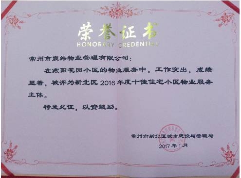 常州市宸緯物業(yè)管理有限公司成立于 2005 年,獲得國(guó)家二級(jí)資質(zhì),是常州市物業(yè)管理協(xié)會(huì)理事單位,并通過(guò)ISO9001:2008 質(zhì)量管理體系、ISO14001:2004 環(huán)境管理體系、OHSAS18001:2007 職業(yè)健康安全管理體系,三標(biāo)一體認(rèn)證,獲得AAA級(jí)企業(yè)資質(zhì)信用等級(jí)、AAA級(jí)重合同守信用企業(yè)、AAA級(jí)質(zhì)量服務(wù)信譽(yù)企業(yè)、AAA級(jí)誠(chéng)信經(jīng)營(yíng)示范單位。 常州市宸緯物業(yè)管理有限公司更是一家適應(yīng)市場(chǎng)需求,積極參與市場(chǎng)經(jīng)濟(jì)競(jìng)爭(zhēng)的高品質(zhì)、高效率、專(zhuān)業(yè)化的物業(yè)管理企業(yè)。公司在物業(yè)管理服務(wù)上導(dǎo)入 ISO9001:2008 質(zhì)量管理體系,建立了一整套適應(yīng)公司發(fā)展的自成體系、行之有效的經(jīng)營(yíng)管理方法,在市場(chǎng)中堅(jiān)持以品牌發(fā)展戰(zhàn)略為目標(biāo)方針,目前公司所管理的項(xiàng)目共計(jì) 25 個(gè)物業(yè)類(lèi)型,包括了住宅小區(qū)、商務(wù)辦公樓、學(xué)校、工業(yè)園區(qū)、廠區(qū)等。 憑借在常州物業(yè)管理行業(yè)多年的豐富經(jīng)驗(yàn)和經(jīng)營(yíng)理念,公司將通過(guò)推行多元化的服務(wù)內(nèi)容,及互聯(lián)網(wǎng)+的服務(wù)模式,努力為每一位客戶(hù)提供舒適、高效的服務(wù)體驗(yàn)。公司始終遵循“讓客戶(hù)滿(mǎn)意是我們永遠(yuǎn)的追求”,不斷探索,勇于創(chuàng)新,隨著經(jīng)營(yíng)理念和管理經(jīng)驗(yàn)日趨成熟,公司將以市場(chǎng)和客戶(hù)的需要為導(dǎo)向,憑借自身的人才、技術(shù)、資本、管理等優(yōu)勢(shì),精誠(chéng)服務(wù),不斷超越客戶(hù)的需求,推進(jìn)物業(yè)管理事業(yè)的發(fā)展。