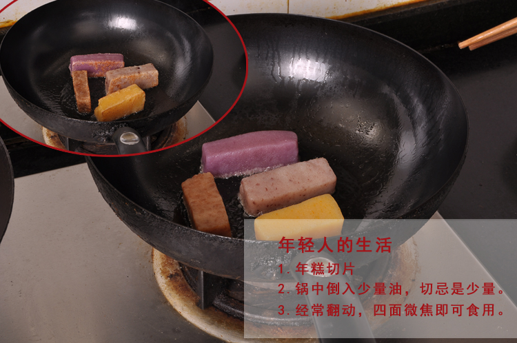 "金豐"牌年糕選料考究,以優(yōu)質(zhì)糯米為主,香氣濃郁、光滑細膩,吃起來很筋韌,口感極佳。這種年糕質(zhì)量穩(wěn)定,不易發(fā)霉發(fā)酸,保管也很方便,不需浸水,久放亦不致風堅變硬,食用前切片不費勁,只要切成1厘米的薄片放入粥鍋,或加水適量在微波爐中熱上兩分鐘左右即可食用。若選擇吃火鍋的主食,就更受消費者歡迎了。當然還可以制作成更加美味的佳肴。