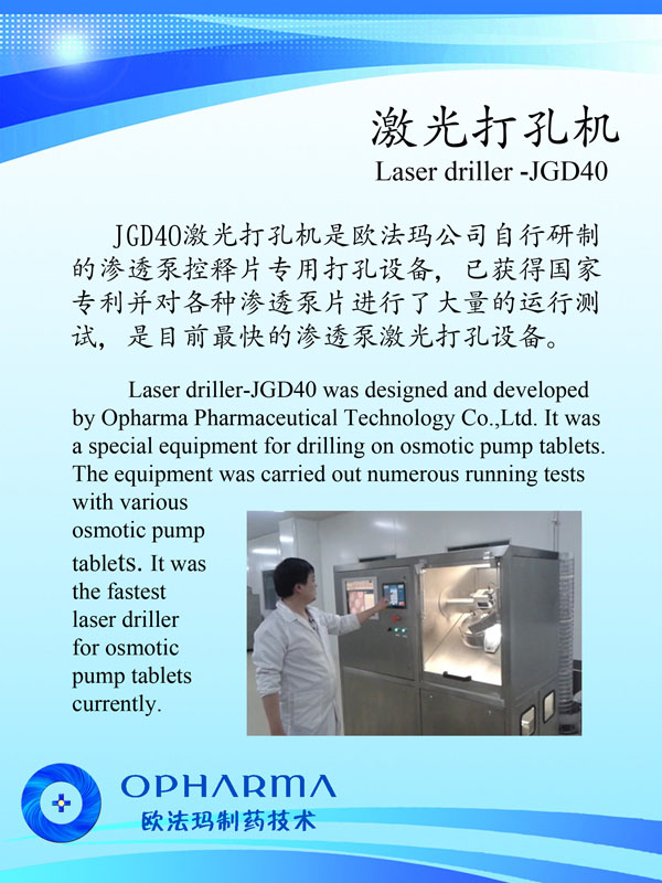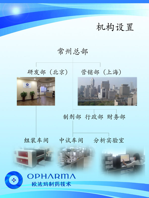 常州歐法瑪制藥技術(shù)有限公司位于長江三角洲黃金腹地——常州。地理位置優(yōu)越、交通便捷,由鐵路、公路、水路、民航形成了一張立體交叉的交通網(wǎng)絡(luò)。 公司創(chuàng)建于2013年,是一家集研發(fā)、生產(chǎn)和銷售為一體,專業(yè)從事高速激光打孔機(jī)、滲透泵制劑研發(fā)、生產(chǎn)和銷售。目前公司擁有員工20人,科技研發(fā)和技術(shù)人員占員工總數(shù)80%以上,其中本科以上學(xué)歷占80%以上。 公司始建以來,以前瞻的科學(xué)規(guī)劃,通過自主研發(fā),解決了高速激光打孔機(jī)諸多的世界難題,使之達(dá)到40片/秒以上且精確打孔的國際領(lǐng)先水平;同時開發(fā)廢片自動識別、剔除功能,以滿足客戶的實(shí)際所需。公司與瑞士等國家研究機(jī)構(gòu)的科技合作,以高速激光打孔機(jī)為基礎(chǔ),建設(shè)了滲透泵制劑研發(fā)和中試生產(chǎn)車間,開發(fā)了多種藥物的滲透泵制劑,形成了從關(guān)鍵設(shè)備研制,新制劑開發(fā)、工藝配套,到批量生產(chǎn)測試的滲透泵制劑開發(fā)全過程技術(shù)團(tuán)隊和研究設(shè)施。公司瞄準(zhǔn)現(xiàn)代新型釋藥系統(tǒng),吸收國內(nèi)外高端人才,努力開拓控緩釋技術(shù)、靶向給藥技術(shù)及智能給藥技術(shù)。 2013年公司被評為黑馬大賽“創(chuàng)業(yè)組50強(qiáng)”、“領(lǐng)軍人才創(chuàng)業(yè)重點(diǎn)企業(yè)”;2014公司通過了IS09001-2008質(zhì)量管理體系認(rèn)證、CE認(rèn)證、江蘇省質(zhì)量信得過企業(yè)。