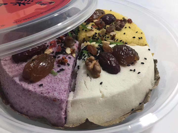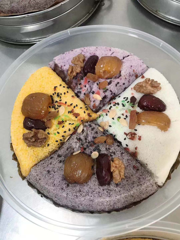 腳踏糕本名“年糕”,按常州周邊地區(qū)的風俗習慣,在春季前夕,各家各戶都要蒸年糕,吃年糕!案狻敝C音“高”,過年吃年糕被賜予“年年高”,一年高一年,鋒吉祥之意,表達這人們對未來美好生活的憧憬和良好的祝愿。今天小編要帶大家的就是一家至今保持著傳統(tǒng)手工制作的鈺鋒糕點坊。 鈺鋒糕點坊位于常州鄭陸鎮(zhèn)三皇廟范家莊,一個比較偏僻的村莊,雖然這家作坊不大,但香糯絲滑,軟糯適中,韌勁十足的腳踏糕吸引了無數(shù)的食客。制作一條腳踏糕要從淘米,浸泡,碾粉,鋪粉,一層一層的鋪下去,需要無數(shù)道制作工序,這些都是店主孫煥公公老周,憑著幾十年的經(jīng)驗,加上店主孫煥從不馬虎的決心! 這“腳踏”也并非赤腳上陣,而是把蒸好的糕倒入早以準備好的框子里,用布包裹好,上面再用薄膜包好,再蓋上布,再換上專門腳踏的布鞋,踩的時候要勻稱,左右腳要配合好,不然糕會高高低低,不平整,最后再拿蠟燭線拆成一條小長條,再拿帶包裝好,如此又香又糯的腳踏糕就大功告成了。 店主孫煥為了讓更多的人認識和了解常州腳踏糕的傳統(tǒng)文化和美食,她在傳統(tǒng)工藝中增加了適合現(xiàn)代文化的多種口味,她在糕里加入南瓜,紫薯,老紅糖,大麥汁,血糯米,核桃,葡萄干,紅棗等食材,做出五顏六色,純天然的口味,深受食客們的喜愛,不管是送人還是自己吃都非常新穎。 (重陽糕)重陽糕的由來,九九重陽,九是陽數(shù),也是陽數(shù)中最大的數(shù),九月初九,兩九相重,為之重陽,古人有重陽登高的習俗。高于糕同意,寓意人活九十九,生活步步高,秋景勝春光,夕陽無限好。夕陽紅成了老人對自己美好的祝愿和希望,所以從某種意義上來講它“祝壽糕”“長壽糕”重陽糕在常州地區(qū)是家喻戶曉的,下面小編帶你去一家至今保持傳統(tǒng)手工制作的鈺鋒糕點坊看一下吧。鈺鋒糕點坊位于常州市天寧區(qū)鄭陸鎮(zhèn)三皇廟范家莊,偏僻的小村莊,雖然有點偏僻,但是每到重陽節(jié)到來,每天還是有很多食客來訂購和購買店主孫煥做的多種口味的重陽糕。要想做出松軟香糯的重陽糕,原材料和糯米和梗米的配比也很重要,調整好比例開始淘米,浸泡,釓粉,放入糖攪拌,篩粉,糕底部放上荷葉,中間的餡心都是孫煥自己熬制,口感,香糯松軟,店主孫煥為了吸引更多現(xiàn)代年輕人,她在粉里加入南瓜,紫薯,紅糖,血糯等,色彩搭配很出跳,吸引來了很多食客,孫煥2019年開始自愿捐贈重陽糕給敬老院,她說這樣的公益活動自己很喜歡,雖然金額不大,缺表達了她的一份心意,并稱這樣的公益活動她每年都會做。