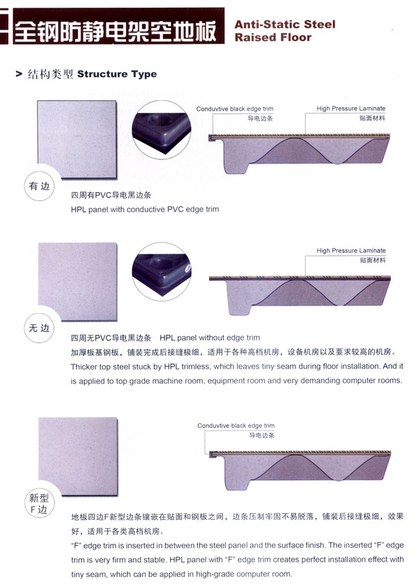 常州市蘇杰機(jī)房地板有限公司是高架地板專(zhuān)業(yè)制造商,專(zhuān)業(yè)從事防靜電地板、OA網(wǎng)絡(luò)地板等各種系列高架地板的研發(fā)、制造和銷(xiāo)售,并提供各種機(jī)房地面和智能化辦公區(qū)地面的整體解決方案。 公司廠區(qū)面積30000平方米,擁有全鋼地板生產(chǎn)線兩條,木基、硫酸鈣基地板生產(chǎn)線各一條,年綜合產(chǎn)能100萬(wàn)平方米。生產(chǎn)蘇杰牌防靜電地板系列和蘇杰牌網(wǎng)絡(luò)地板系列,主要產(chǎn)品有全鋼防靜電架空地板、全鋼OA網(wǎng)絡(luò)地板、瓷磚貼面防靜電地板、硫酸鈣防靜電地板、木基防靜電地板、鋁合金防靜電地板、防靜電通風(fēng)地板等。 蘇杰人秉承“科技先導(dǎo)、市場(chǎng)為本、持續(xù)發(fā)展”的企業(yè)發(fā)展觀,堅(jiān)持“以先進(jìn)技術(shù)裝備為基礎(chǔ),以現(xiàn)代化管理為依托,以專(zhuān)業(yè)化服務(wù)為保障”的宗旨,使公司不斷發(fā)展壯大成為現(xiàn)代化的企業(yè)。 蘇杰人堅(jiān)持“嚴(yán)謹(jǐn)思考、嚴(yán)密操作、嚴(yán)格檢查、嚴(yán)肅驗(yàn)證”的品質(zhì)理念和“以客戶(hù)為中心”的服務(wù)理念,始終致力于產(chǎn)品的技術(shù)創(chuàng)新和質(zhì)量創(chuàng)優(yōu),為用戶(hù)提供優(yōu)質(zhì)的產(chǎn)品、合理的價(jià)格和貼心的服務(wù)。 常州市蘇杰機(jī)房地板有限公司將不斷開(kāi)發(fā)和制造一流的產(chǎn)品,吸引和培養(yǎng)一流的人才,提供和完善一流的服務(wù),樹(shù)立和保持一流的形象,與時(shí)俱進(jìn),共謀發(fā)展。