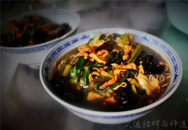 武進(jìn)區(qū)青城面館經(jīng)營(yíng)面積280平方米左右,主要特色是現(xiàn)炒肉絲,素菜蓋澆面,面館創(chuàng)始人今年63歲的王蘭珍,她對(duì)美食有著高于常人的悟性。她開(kāi)過(guò)饅頭店,開(kāi)過(guò)小飯館,承包過(guò)食堂,燒菜、取料樣樣在行,吃過(guò)的人常常贊不絕口。 20世紀(jì)初,在跟德興面館的老師傅學(xué)了做面手藝后,王蘭珍萌生了開(kāi)一家面館的想法,除了可以養(yǎng)家糊口,最重要的是想讓更多人嘗嘗自己的手藝。于是,她在自己的住處擺起了幾張桌椅,面館就算正式營(yíng)業(yè)了。因?yàn)榧易∏喑菢颍跆m珍干脆取名“青城面館”。 “從早上5點(diǎn)多開(kāi)始營(yíng)業(yè),到下午1點(diǎn)多打烊,一天至少要賣掉300多碗面,用掉近160斤面粉。”為何青城面館的面條如此受歡迎,兒媳婦陸偉紅說(shuō)秘訣在于湯頭和澆頭。湯頭分白湯和紅湯,白湯是由10斤豬骨頭熬制而成,湯色清澈而味道濃郁;紅湯以骨頭湯作底湯,加入茴香、甘草、草果等20多種中草藥,以及糖、醬油等調(diào)味品,鮮而不腥,散發(fā)出陣陣香味。 和一般面館事先燒制好澆頭,放在盆里供客人選擇不同,青城面館的澆頭都是一份份現(xiàn)炒的,特別講究食材的新鮮。就拿暢銷的肉絲蔬菜紅湯面來(lái)說(shuō),要先起猛火,把肉絲、木耳、蘑菇、青菜等食材放一起煸炒至香,然后澆在撈起的面條上。一碗面出來(lái),現(xiàn)炒的澆頭與面條融合,味道香郁至極。 遙觀人的早晨,醒得有些早。對(duì)很多遙觀人來(lái)說(shuō),美好的一天是從青城面館開(kāi)始的。那一碗碗現(xiàn)炒的蓋澆面,筋道爽滑、醬香味濃,溫存著他們的胃與記憶,帶來(lái)刻進(jìn)骨子里的家鄉(xiāng)味道。
