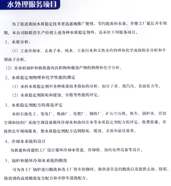 南京化工學(xué)院常州市武進(jìn)水質(zhì)穩(wěn)定劑廠是集科研、生產(chǎn)、經(jīng)貿(mào)、服務(wù)、教育于一體的聯(lián)合實(shí)體,創(chuàng)辦于1986年。 企業(yè)位于長(zhǎng)江金三角,緊靠滬寧鐵路和京杭大運(yùn)河畔,處于滬寧高速公路之間道口橫山橋鎮(zhèn),距民航常州機(jī)場(chǎng)僅半小時(shí)路程,交通便捷。企業(yè)占地面積15.7萬(wàn)平方米,擁有固定資產(chǎn)5000余萬(wàn)元,員工400余名,其中專業(yè)技術(shù)人員占員工總數(shù)的28%。專業(yè)生產(chǎn)“頌歌”牌系列水質(zhì)穩(wěn)定劑,綜合年產(chǎn)能力3萬(wàn)噸。 企業(yè)從1995年起先、后被列為國(guó)家中型二檔企業(yè),江蘇省明星企業(yè),江蘇省高新技術(shù)企業(yè),江蘇省環(huán)保產(chǎn)業(yè)百?gòu)?qiáng)企業(yè),化工部化工建設(shè)工程標(biāo)準(zhǔn)產(chǎn)品定點(diǎn)生產(chǎn)企業(yè),國(guó)家“精細(xì)化工星火技術(shù)密集區(qū)”重點(diǎn)骨干企業(yè),國(guó)家“貿(mào)工農(nóng)”出口商品生產(chǎn)基地。2003年起被評(píng)為國(guó)家環(huán)保產(chǎn)業(yè)骨干企業(yè)。2004年起“頌歌”商標(biāo)被評(píng)為江蘇省著名商標(biāo),“頌歌”牌水質(zhì)穩(wěn)定劑被評(píng)為江蘇省名牌產(chǎn)品。 企業(yè)運(yùn)用嚴(yán)密的科學(xué)管理,配有先進(jìn)的工藝技術(shù)和精良的生產(chǎn)裝備,保持高標(biāo)準(zhǔn)的產(chǎn)品質(zhì)量。所生產(chǎn)的水質(zhì)穩(wěn)定劑達(dá)到或超過國(guó)際先進(jìn)水平,擁有PBTCA等多個(gè)江蘇省高新技術(shù)產(chǎn)品,DPSC緩蝕阻垢劑被列為國(guó)家星火計(jì)劃項(xiàng)目,工業(yè)循環(huán)水用新型緩蝕阻垢殺菌劑被國(guó)務(wù)院評(píng)為國(guó)家科技進(jìn)步二等獎(jiǎng)。主要產(chǎn)品均通過部、省級(jí)科技成果鑒定,連續(xù)十多年被中國(guó)石化總公司評(píng)定為合格推薦產(chǎn)品。企業(yè)已通過IS09001、IS014001國(guó)際質(zhì)量、環(huán)境認(rèn)證,為國(guó)內(nèi)外石化行業(yè)、冶金、鋼鐵、化肥、電力、紡織等領(lǐng)域的工業(yè)循環(huán)冷卻水的水質(zhì)處理提供了必不可少的配套產(chǎn)品。 企業(yè)對(duì)外開放,實(shí)行全方位合作。自九六年企業(yè)獲得自營(yíng)進(jìn)出口經(jīng)營(yíng)權(quán),水質(zhì)穩(wěn)定劑產(chǎn)品已銷往美國(guó)、英國(guó)、澳大利亞、日本和東南亞國(guó)家及香港、臺(tái)灣等地區(qū),并與之建立了穩(wěn)定的經(jīng)貿(mào)合作關(guān)系。