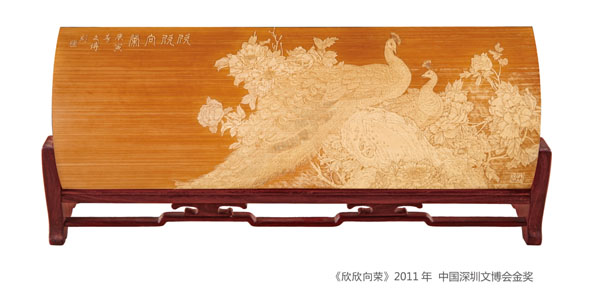 得獎情況 1、扇形擺件《花鳥》2004年9月太湖博覽會金獎 2、《蘭亭序》2008年11月江蘇藝博杯工藝美術(shù)精品獎銀獎 3、《雄風(fēng)圖》2008年11月江蘇藝博杯工藝美術(shù)精品獎創(chuàng)意獎 4、《靜音》2008年11月“天工藝苑•百花杯”中國工藝美術(shù)精品獎銀獎 5、《人物》2008年12月中國收藏藝術(shù)精品博覽會金獎 6、《花鳥》200 8年12月中國收藏藝術(shù)精品博覽會銀獎 7、《青竹鳥語》2008年12月中國收藏藝術(shù)品博覽會“入圍收藏品” 8、《吉祥富貴》2009年3月“金鳳凰”創(chuàng)新產(chǎn)品設(shè)計(jì)大獎賽金獎 9、《黃山云海》2009年10月江蘇藝博杯工藝美術(shù)精品獎金獎 10、《花鳥》2009年10月第二屆江蘇旅游商品博覽會最佳產(chǎn)品獎 11、《秋菊圖》2009年11月“天工藝苑•百花杯”中國工藝美術(shù)精品獎銀獎 12、《秋鷹圖》2010年3月“金鳳凰”創(chuàng)新產(chǎn)品設(shè)計(jì)大獎賽優(yōu)秀獎 13、《花鳥四屏》2010年3月“金鳳凰”創(chuàng)新產(chǎn)品設(shè)計(jì)大獎賽銅獎 14、《荷塘清暑》2010年5月深圳國際文化產(chǎn)業(yè)博覽交易會銅獎 15、《溪山煙云圖》2010年9月江蘇藝博杯工藝美術(shù)精品大獎賽金獎 16、《高士臨風(fēng)圖》2010年10月“天工藝苑•百花杯”中國工藝美術(shù)精品獎銀獎 17、《溪山煙云圖》2010年11月第二屆東方工藝美術(shù)之都博覽會“迎春花獎” 18、《深山尋隱圖》2011年3月“金鳳凰”產(chǎn)品設(shè)計(jì)大獎賽銅獎 19、《欣欣向榮》2011年5月深圳國際文化產(chǎn)業(yè)博覽交易會金獎 20、《江崖遠(yuǎn)眺圖》2011年9月江蘇藝博杯工藝美術(shù)精品大獎賽金獎 21、《富春山居圖》2011年10月“天工藝苑•百花杯”中國工藝美術(shù)精品獎金獎 22、《深山訪友》2011年11月中國無錫國際文化藝術(shù)博覽會銀獎 23、《幽谷清音》2012年3月“金鳳凰”創(chuàng)新產(chǎn)品設(shè)計(jì)大獎賽銅獎 24、《群芳競艷》2012年10月“儒仕儒家、百花杯”中國工藝美術(shù)精品博覽會金獎 25、《山村渡口圖》2012年12江蘇藝博杯工藝美術(shù)精品大獎賽金獎。 26、《晨妝》2013年4月“金鳳凰”創(chuàng)新產(chǎn)品設(shè)計(jì)大獎賽金獎。 27、《和風(fēng)圖》2013年6月中國(青島)工藝美術(shù)博覽會創(chuàng)新產(chǎn)品設(shè)計(jì)大賽金獎。 28、《松壑聽泉》2013年9月江蘇藝博杯工藝美術(shù)精品大獎賽銀獎。 29、《君子圖》2013年11月“國信•百花杯”中國工藝美術(shù)精品獎銀獎 30《碧水輕舟》2014年5月深圳國際文化產(chǎn)業(yè)博覽交易會銀獎。 31、《千巖萬壑圖》2014年10月“中國原創(chuàng)•百花杯”中國工藝美術(shù)精品獎金獎 32、《溪山訪友圖》2014年10月江蘇藝博杯工藝美術(shù)精品大獎賽銀獎 33、《深山云壑》2014年12月深圳冬季國際文化產(chǎn)業(yè)博覽交易會金獎 34、《鷹》2015年深圳文化產(chǎn)業(yè)博覽交易會獲“中國工藝美術(shù)文化創(chuàng)意獎”金獎