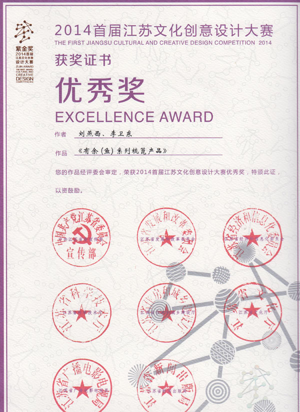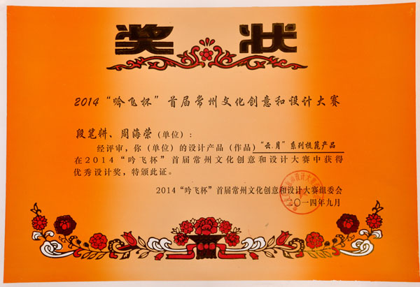公司榮譽介紹: “2009年常州市旅游商品創(chuàng)新設計大賽”,“覽盡千荷”綠檀雕刻梳榮獲三等獎; “2011年常州市旅游商品創(chuàng)新設計大賽”,“彩印工藝梳-我們的年代(80)”榮獲二等獎。 “2011年中國包裝創(chuàng)意設計大賽“,虞美人彩印梳篦系列包裝獲得一等獎; “2011年中國包裝創(chuàng)意設計大賽”,虞美人筷子系列包裝獲得三等獎; “2011創(chuàng)意中國.第五屆設計藝術大獎賽”,虞美人系列包裝獲得三等獎; “2011首屆中國(無錫)國際文化藝術博覽會”,漆藝對梳《喜玫瑰》獲得“藝博杯“銅獎。 “第十三屆中國工藝美術大師作品暨國際藝術精品博覽會”, 漆藝梳《報喜鳥》榮獲2012“儒士儒家•百花杯”中國工藝美術精品獎優(yōu)秀獎 “第十三屆中國工藝美術大師作品暨國際藝術精品博覽會”, 虞美人《渾然天成》榮獲2012“儒士儒家•百花杯”中國工藝美術精品獎金獎 “2012江蘇省工藝美術精品大獎賽”,虞美人《S型梳》喜獲“藝博杯”銀獎 “第十四屆中國工藝美術大師作品暨國際藝術精品博覽會”, 虞美人工藝梳《新型十二星座梳》榮獲2013“國信•百花杯”中國工藝美術精品獎優(yōu)秀獎 “2013【藝博杯】江蘇省工藝美術精品大獎賽”,虞美人《萬事如意系列》喜獲“藝博杯”銀獎 “2013江蘇省工藝美術新人新作成果展作品大獎賽”,虞美人《壺(福)的藝術》喜獲“藝博杯”入圍獎 2013年度江蘇省“蘇商領袖峰會”,常州市卓尚飾品有限公司榮獲最具成長性企業(yè)獎 常州市卓尚飾品(虞美人)有限公司總經理李衛(wèi)東榮獲“常州創(chuàng)意產業(yè)協(xié)會2013年底慈善獎榮譽” 常州市卓尚飾品有限公司榮獲薛家鎮(zhèn)人民政府2013年度“創(chuàng)新創(chuàng)優(yōu)”獎 常州市卓尚飾品有限公司榮獲薛家鎮(zhèn)人民政府2013年度“銷售業(yè)績”獎 2014中國(深圳)國際文化產業(yè)博覽交易會,劉燕西、李衛(wèi)東、段筆耕<十二星座系列>獲得“中國工藝美術文化創(chuàng)意獎”銀獎 2014中國(深圳)國際文化產業(yè)博覽交易會,徐德鴻、李衛(wèi)東、段筆耕《漆彩人生系列》獲得“中國工藝美術文化創(chuàng)意獎”銅獎 文化創(chuàng)意大獎賽“紫金獎” ,有余(魚)系列梳篦產品獲得了優(yōu)秀獎 2014吟飛杯首屆常州文化創(chuàng)意和設計大賽,虞美人有余(魚)系列梳篦產品榮獲優(yōu)秀設計獎 2014吟飛杯首屆常州文化創(chuàng)意和設計大賽,虞美人“云,月”系列梳篦產品榮獲優(yōu)秀設計獎 2014藝博杯江蘇省工藝美術精品大獎賽,虞美人《梳篦:酒醉的探戈》喜獲銀獎 2014“中國原創(chuàng)•百花杯”中國工藝美術精品大獎賽,虞美人《梳篦-江南風韻系列》喜獲銀獎 常州市卓尚飾品有限公司獲“2014年常州市電子商務協(xié)會2014年度優(yōu)秀會員單位” 2014“虞美人”成為常州市知名商標。