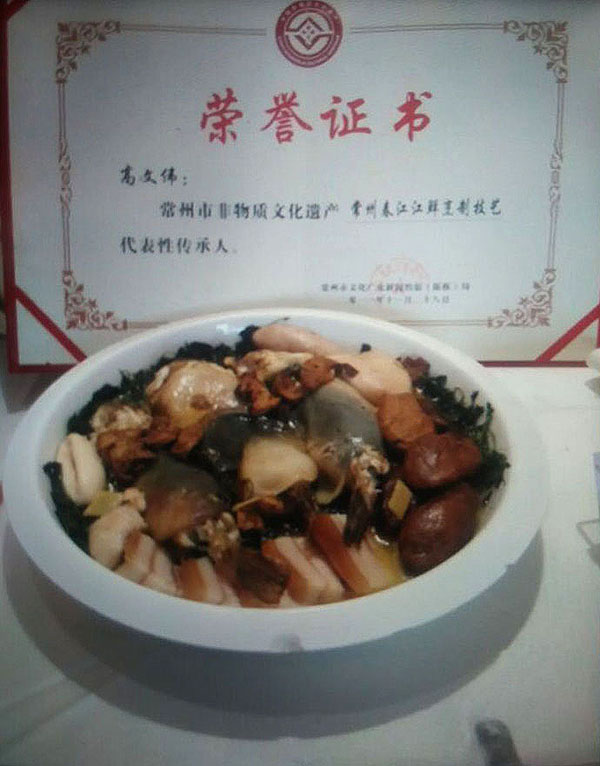 常州新區(qū)圩塘鎮(zhèn)文偉大酒家,從事餐飲行業(yè)40多年,主要特色長(zhǎng)江三鮮,是長(zhǎng)江三鮮燒制的常州非物質(zhì)文化遺產(chǎn)傳承人,目前酒店在高文偉的精心經(jīng)營(yíng)下,燒制的各類(lèi)菜肴味美可口,色香味俱全,菜肴的原料貨真價(jià)實(shí),原汁原味,并受到社會(huì)各界的一致好評(píng)!
