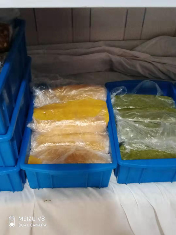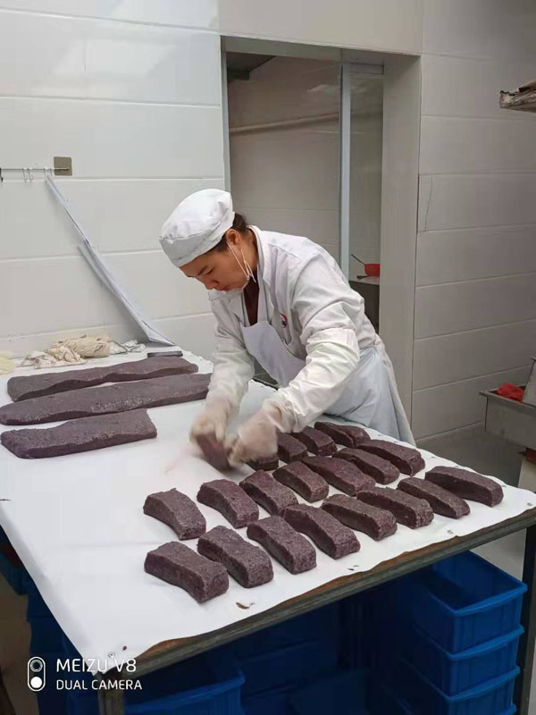 腳踏糕本名“年糕”,按常州周邊地區(qū)的風(fēng)俗習(xí)慣,在春季前夕,各家各戶都要蒸年糕,吃年糕!案狻敝C音“高”,過年吃年糕被賜予“年年高”,一年高一年,鋒吉祥之意,表達(dá)這人們對未來美好生活的憧憬和良好的祝愿。今天小編要帶大家的就是一家至今保持著傳統(tǒng)手工制作的鈺鋒糕點坊。 鈺鋒糕點坊位于常州鄭陸鎮(zhèn)三皇廟范家莊,一個比較偏僻的村莊,雖然這家作坊不大,但香糯絲滑,軟糯適中,韌勁十足的腳踏糕吸引了無數(shù)的食客。制作一條腳踏糕要從淘米,浸泡,碾粉,鋪粉,一層一層的鋪下去,需要無數(shù)道制作工序,這些都是店主孫煥公公老周,憑著幾十年的經(jīng)驗,加上店主孫煥從不馬虎的決心! 這“腳踏”也并非赤腳上陣,而是把蒸好的糕倒入早以準(zhǔn)備好的框子里,用布包裹好,上面再用薄膜包好,再蓋上布,再換上專門腳踏的布鞋,踩的時候要勻稱,左右腳要配合好,不然糕會高高低低,不平整,最后再拿蠟燭線拆成一條小長條,再拿帶包裝好,如此又香又糯的腳踏糕就大功告成了。 店主孫煥為了讓更多的人認(rèn)識和了解常州腳踏糕的傳統(tǒng)文化和美食,她在傳統(tǒng)工藝中增加了適合現(xiàn)代文化的多種口味,她在糕里加入南瓜,紫薯,老紅糖,大麥汁,血糯米,核桃,葡萄干,紅棗等食材,做出五顏六色,純天然的口味,深受食客們的喜愛,不管是送人還是自己吃都非常新穎。 (重陽糕)重陽糕的由來,九九重陽,九是陽數(shù),也是陽數(shù)中最大的數(shù),九月初九,兩九相重,為之重陽,古人有重陽登高的習(xí)俗。高于糕同意,寓意人活九十九,生活步步高,秋景勝春光,夕陽無限好。夕陽紅成了老人對自己美好的祝愿和希望,所以從某種意義上來講它“祝壽糕”“長壽糕”重陽糕在常州地區(qū)是家喻戶曉的,下面小編帶你去一家至今保持傳統(tǒng)手工制作的鈺鋒糕點坊看一下吧。鈺鋒糕點坊位于常州市天寧區(qū)鄭陸鎮(zhèn)三皇廟范家莊,偏僻的小村莊,雖然有點偏僻,但是每到重陽節(jié)到來,每天還是有很多食客來訂購和購買店主孫煥做的多種口味的重陽糕。要想做出松軟香糯的重陽糕,原材料和糯米和梗米的配比也很重要,調(diào)整好比例開始淘米,浸泡,釓粉,放入糖攪拌,篩粉,糕底部放上荷葉,中間的餡心都是孫煥自己熬制,口感,香糯松軟,店主孫煥為了吸引更多現(xiàn)代年輕人,她在粉里加入南瓜,紫薯,紅糖,血糯等,色彩搭配很出跳,吸引來了很多食客,孫煥2019年開始自愿捐贈重陽糕給敬老院,她說這樣的公益活動自己很喜歡,雖然金額不大,缺表達(dá)了她的一份心意,并稱這樣的公益活動她每年都會做。