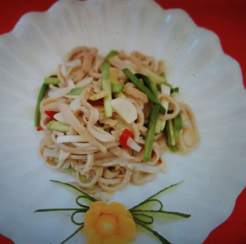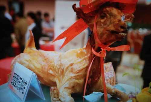 張萬成羊莊一家綜合性的公司,下設(shè)酒店,羊產(chǎn)品加工廠,屠宰廠,山羊養(yǎng)殖場。 酒店位于常州西夏墅浦河村,酒店羊宴規(guī)模占地30畝,酒店主要經(jīng)營特色全羊宴。 一個祖?zhèn)鞯臍⒀虼髴,傳到張萬成,已是第六代了。張家的羊肉,素來以肉質(zhì)鮮美著稱,張萬成羊莊的主人張建龍是第六代傳人,張家的羊肉素來以肉質(zhì)鮮美著稱,從常州新北區(qū)沿黃河西路往機(jī)場方向直行至羅溪右轉(zhuǎn),穿過滬寧高速高架橋后不遠(yuǎn)處左拐沿翠屏湖路直走便能看到張萬成羊莊,酒店上下共有三層,2000多平方米經(jīng)營面積,能同時接待近30桌客人的規(guī)模。有自己的羊圈和屠宰場,每天殺20多只,菜式近100道。光是原料,就從原來羊身上的幾個主要部位,增加到除了羊牙齒以外的一只整羊全部可以入菜。烹制方式,更是在本土單一的燒、炒、煮基礎(chǔ)上,借鑒了東北、廣東、四川等地的烹羊特色,增加了蒸、涮、烤、煎、炸等多種方式。 注重原汁原味的冷菜 白切羊肉:精選羊頸部的活肉精制而成,肥瘦適中,絲毫沒有一般羊肉的膻味,沾少許張萬成羊莊秘制的醬料,口感非常好。 美味羊舌:張家的羊舌感覺是用特殊的醬料腌制過的,咸中略有甜味,口感鮮嫩卻肥而不膩,味道很香。 除了白切羊肉和羊舌以外還有許多冷菜品種,如羊肚、羊心、羊耳朵等。。 火候控制精準(zhǔn)的炒菜 炒羊肝:地道的農(nóng)家風(fēng)味,與大蒜葉同炒,蒜香濃郁,羊肝鮮嫩,這羊肝可是火候菜,羊肝鮮嫩與否不但取決于廚師對火候的掌握,還在于上桌放置時間的長短,所以羊肝上桌后要盡快食用,看羊肝是否鮮嫩,只需用筷子挑起并輕輕抖動,有彈性者為佳。 美味羊?qū)殻阂跃曼S、鮑味菇爆炒的羊?qū),說是滋補(bǔ)壯陽的一道金貴菜,配料講究的燒菜系列 宮廷燴羊肚:較為金貴的菜品,配菜貴于主料,是以名貴的素鮑和新鮮的筍絲與羊肚同煮,口感濃郁,營養(yǎng)豐富。 海參白燒羊肉:將取自7個月大羔羊身上的帶皮腿肉與海參一同煨煮,菜肴美容滋補(bǔ),兩種鮮味互相補(bǔ)益達(dá)到完美交融狀態(tài),口感甚佳。 魚羊鮮:新鮮的青魚配上羊肉,既有本地羊肉的肥嫩,又有魚肉的鮮香,鮮!鮮!古代人造字就是有道理!”店里可以根據(jù)客人的需要配以魚回魚、鯰魚、鱖魚等。 特色的羊宴點(diǎn)心 羊肉餛飩:羊莊老板自創(chuàng)的羊宴點(diǎn)心,看似普通的油燜跑蛋卻另有乾坤,將蛋掀開便能看見藏于其中的羊肉菜餡餛飩,菜和肉都是自家新鮮的原料,很好吃。 手工搟面:不知道是因?yàn)槊媸钦嬲檬止{制還是因?yàn)榧尤肓缩r味十足的羊湯,總之味道非常好,面勁道,湯也鮮美! 張萬成羊莊的羊湯也是遠(yuǎn)近聞名,因?yàn)槭亲鎮(zhèn)鞯氖炙嚕龀鰜淼难驕恍炔浑,香醇不膩,味道十分鮮美,加入粉絲或者面條更是難得的美味。